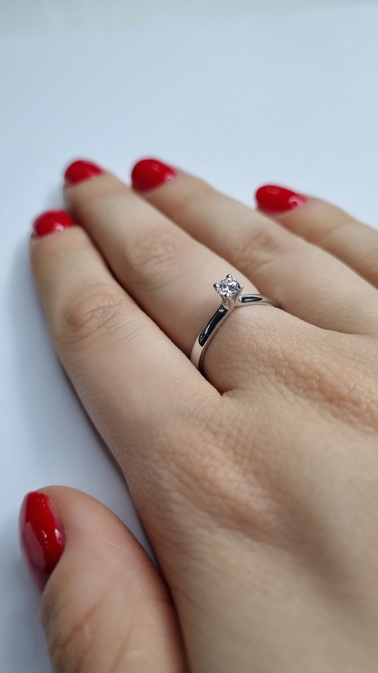 Svetlucav, sjajan, najsjajniji okrugli brilijant u kombinaciji sa belim zlatom čini prsten savršenim za svaku damu sa stilom.