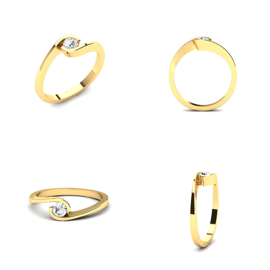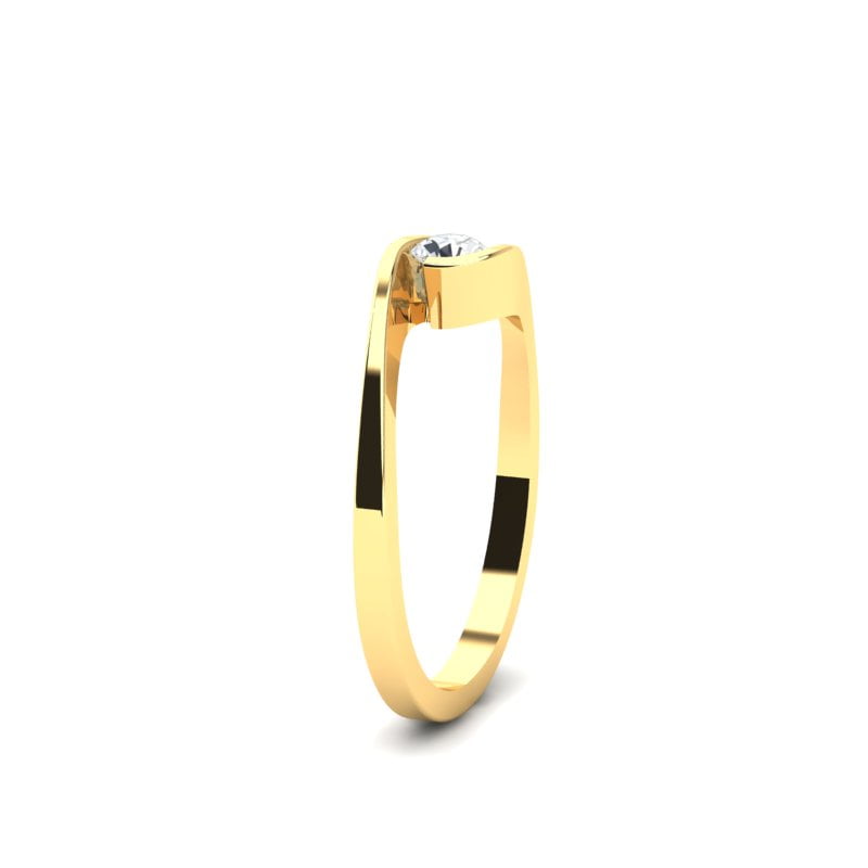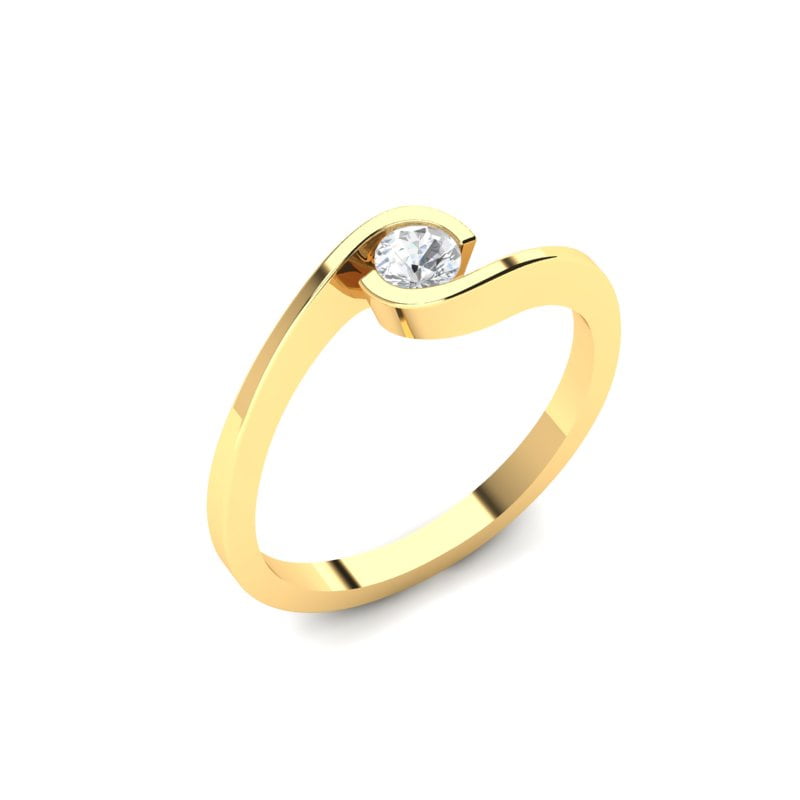Prsten od žutog zlata sa prirodnim okruglim dijamantom je pravi izraz moderne elegancije, koja se odlikuje neobičnim i umetničkim dizajnom. Umesto klasičnog fasunga, ovaj prsten ima asimetričan fasung koji drži dijamant na jedinstven način, dajući mu dinamičan i inovativan izgled. Asimetrična struktura fasunga stvara savršen kontrast između jednostavne lepote samog dijamanta i smelo oblikovane baze prstena, čineći ga nesvakidašnjim i zapanjujuće originalnim. Ovaj dizajn ne samo da naglašava snagu dijamanta, već i dodaje dozu modernog šarma. Dijamant je delikatno postavljen u harmoničan položaj, što omogućava svetlu da dolazi sa više strana, stvarajući fenomenalne efekte svetlucanja. Ovaj neobičan fasung ujedno omogućava da dijamant bude izložen sa svih strana, otkrivajući svaku njegovu facetu u punom sjaju.