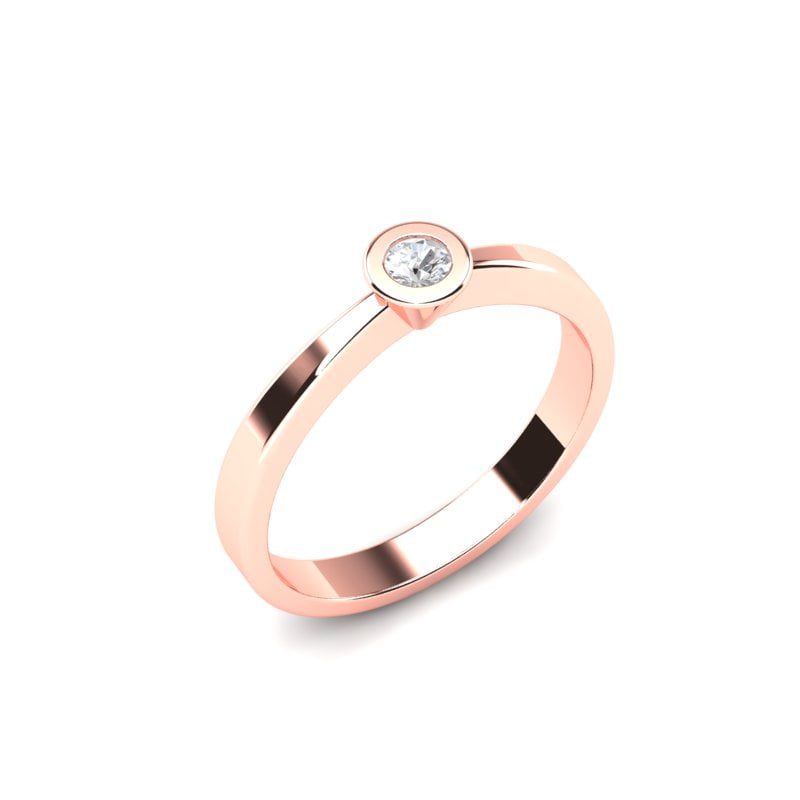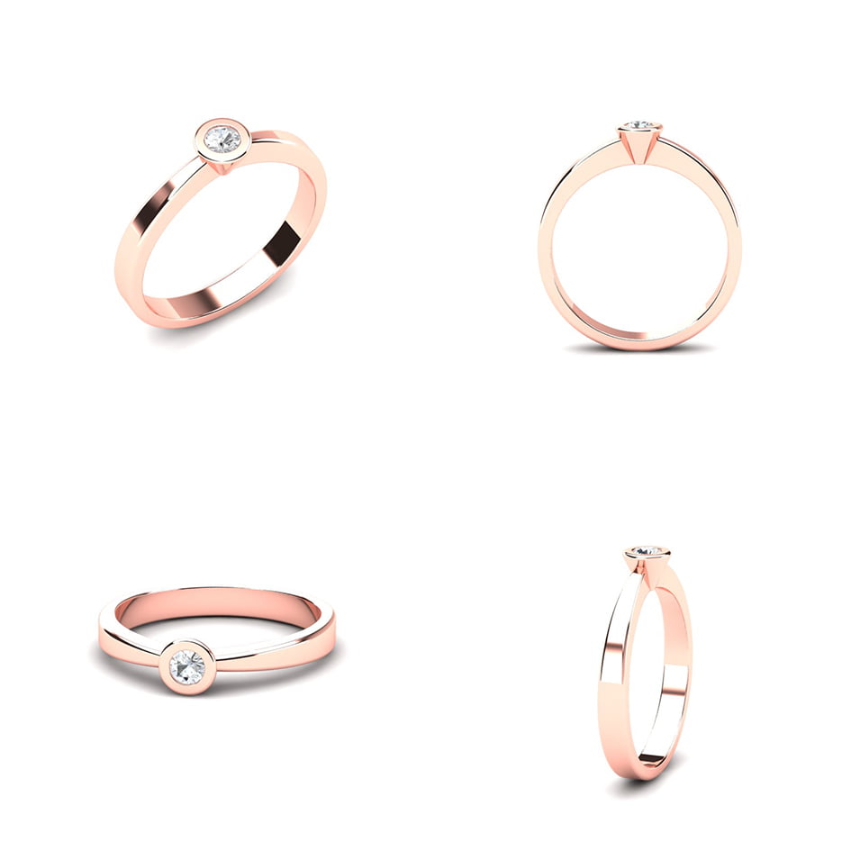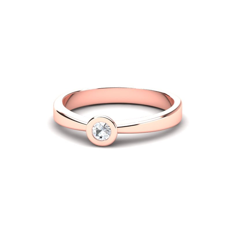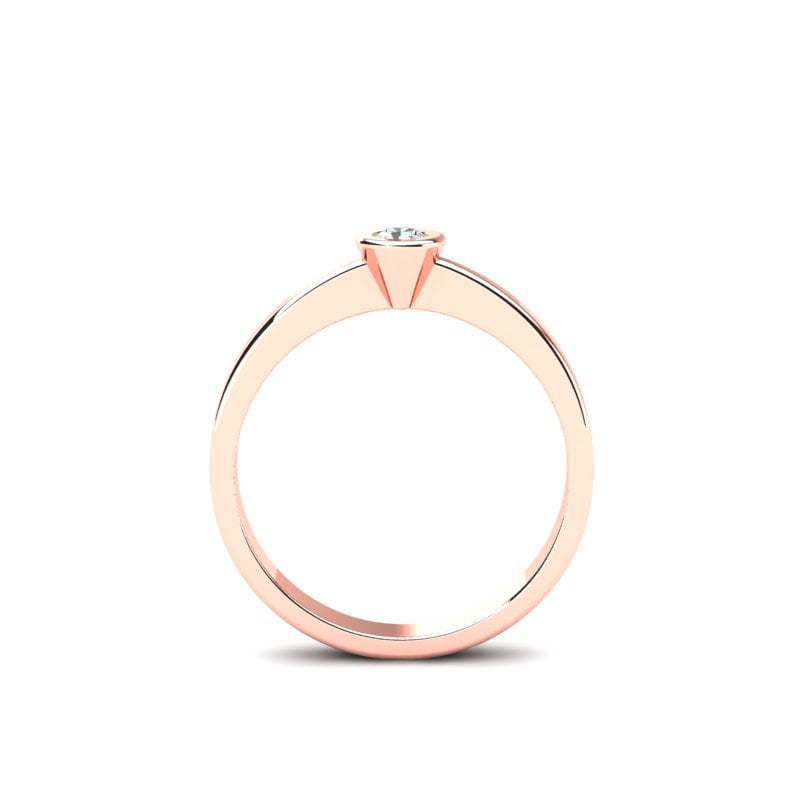 Verenički prsten od roze zlata jednostavnog dizajna odiše elegancijom i sofisticiranošću. Izrađen je od punog roze zlata, što mu daje postojanost i kvalitet. Njegova čista i glatka površina pruža suptilan sjaj. Na prstenu se nalazi prirodni okrugli dijamant koji je ufasovan u okrugli fasung, što omogućava maksimalno izlaganje dijamanta svetlu i time pojačava njegov briljantan sjaj. Ovaj prsten je savršen izbor za onog ko traži minimalistički, ali upečatljiv komad nakita, sa naglaskom na prirodnu lepotu dijamanta. Klasika koja nikad ne izlazi iz mode.