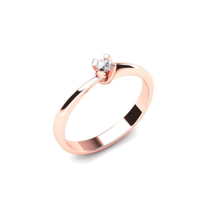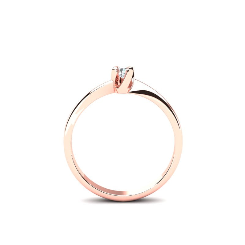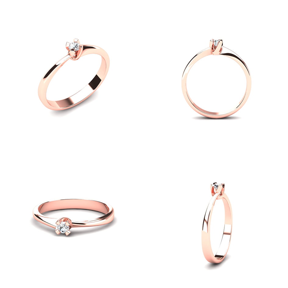 Ovaj verenički prsten, izrađen od roze zlata, odiše elegancijom i sofisticiranošću. U središtu prstena nalazi se prirodni dijamant, čiji briljantni sjaj odmah privlači pažnju. Dijamant je pažljivo postavljen i drži ga četiri delikatne krapne, koje mu omogućavaju da se uzdigne iznad šine prstena, stvarajući vizuelni efekat luksuza i prefinjenosti. Dizajn je jednostavan, ali moćan, sa fokusom na dijamant koji simbolizuje trajnu ljubav i posvećenost. Ovaj prsten je idealan izbor za veridbu, jer u sebi nosi kombinaciju klasične lepote i modernog šarma, što ga čini savršenim simbolom večne veze.