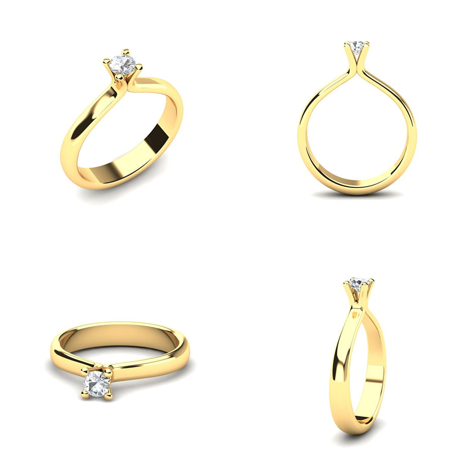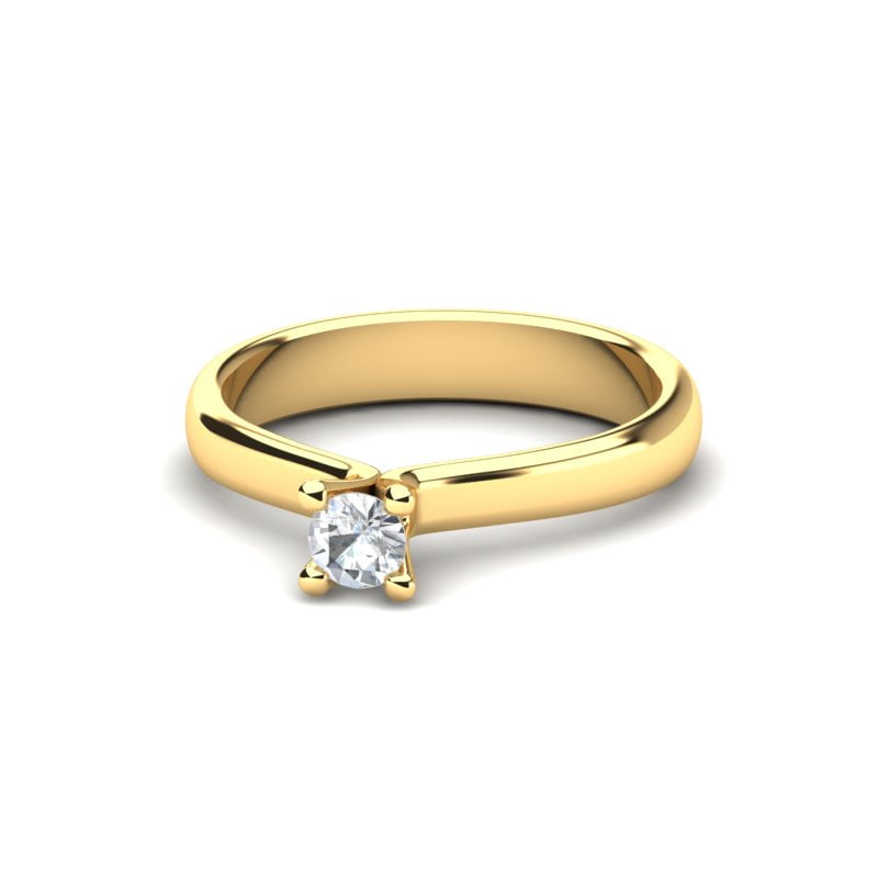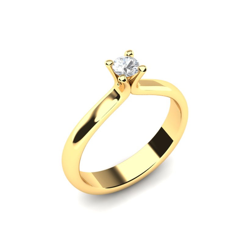 Svetlucav, sjajan, najsjajniji okrugli brilijant u kombinaciji sa žutim zlatom čini prsten savršenim za svaku damu sa stilom.