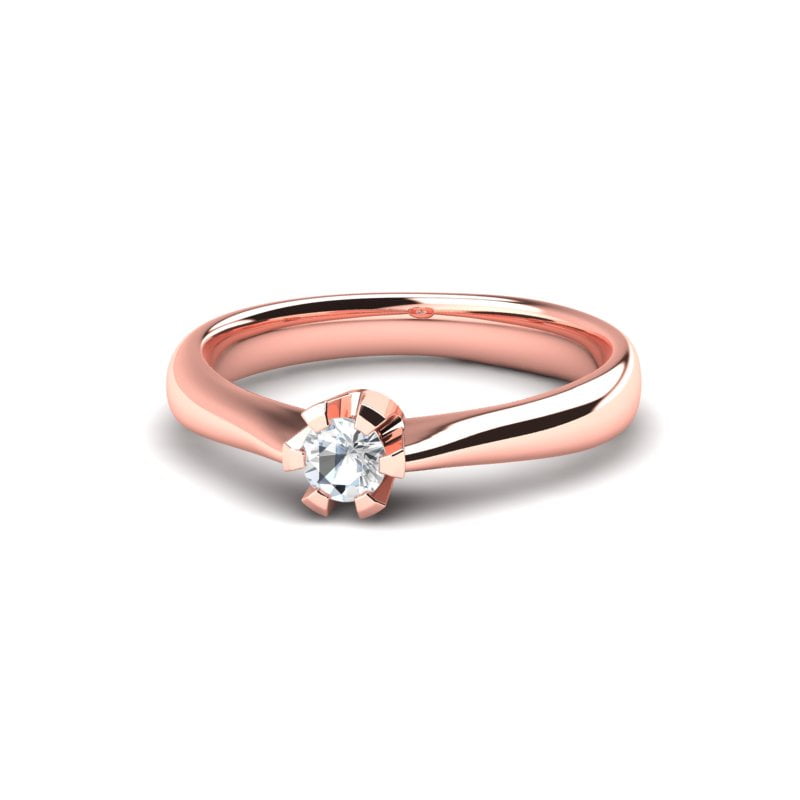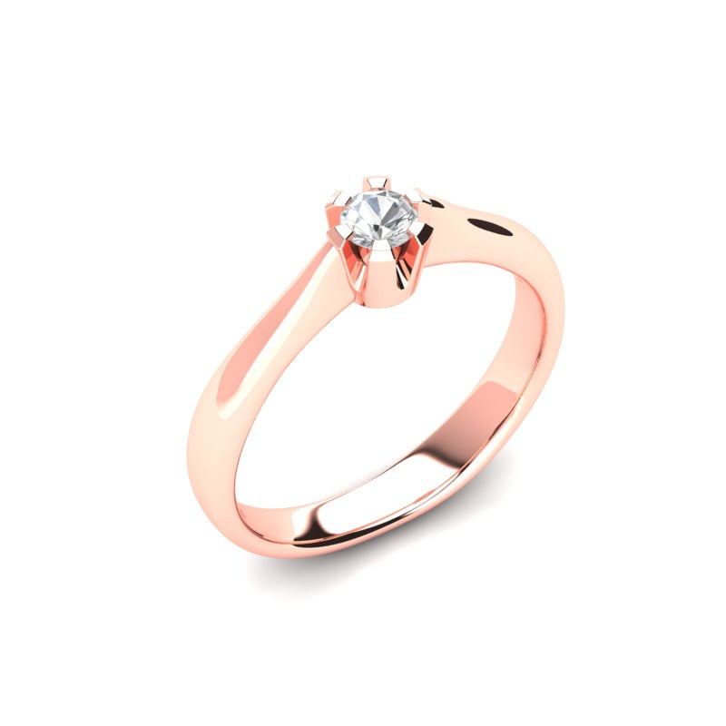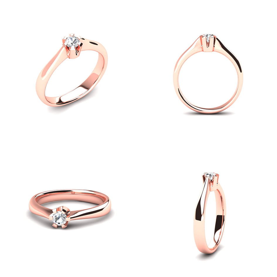 Dijamant nežno obuhvataju šest stilizovanih krapni, stvarajući savršen balans između zaštite i izraženog elegantskog efekta. Ove krapne pružaju prstenu stabilnost, ali i dodaju dašak sofisticirane jednostavnosti. Roze zlato još više ističe čistoću dijamanta, a istovremeno dodaje prstenu luksuznu, ali nenametljivu notu.
