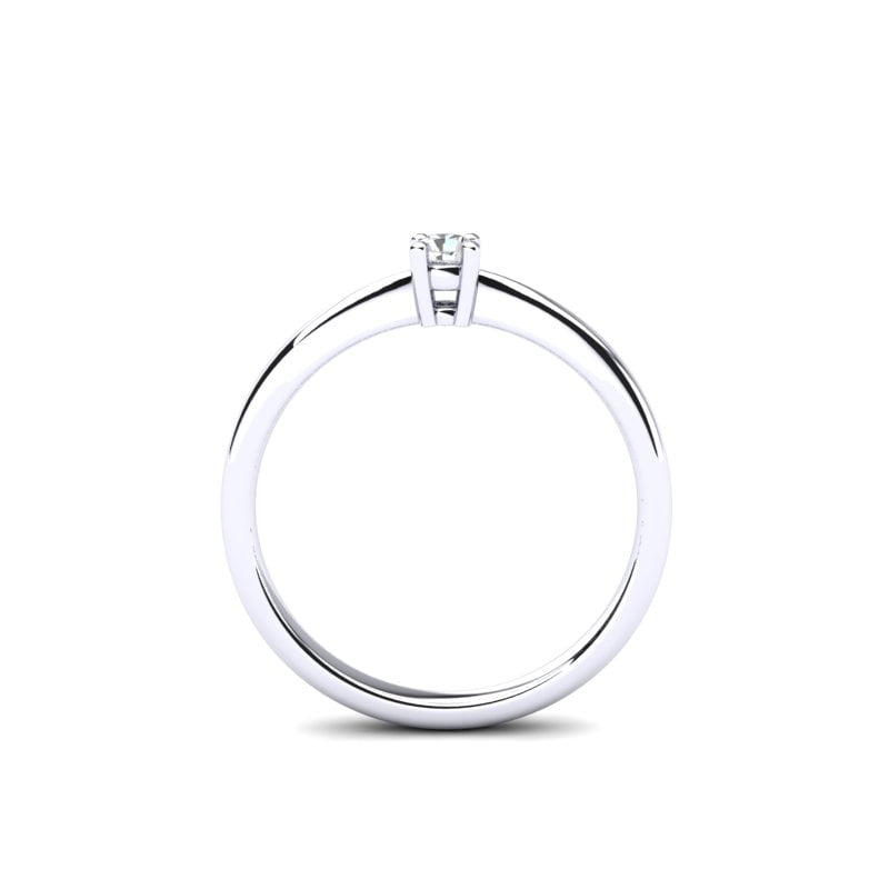Dijamant je postavljen u centar prstena, a njegov oblik je savršeni okrugli cut (round brilliant), koji je poznat po svom briljantnom sjaju. Dijamant je držan u postavci sa četiri male krapne, koje omogućavaju maksimalnu izloženost svetlosti i naglašavaju lepotu kamena.