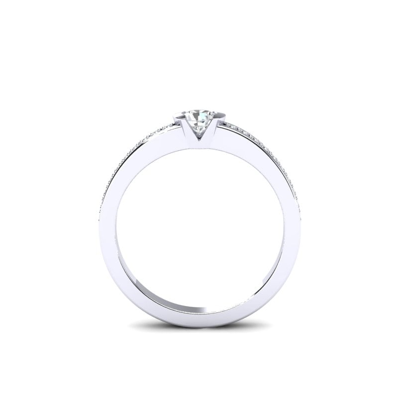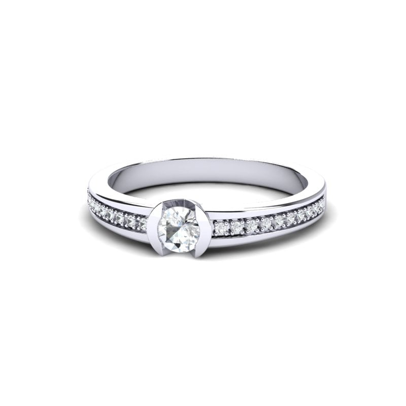 Atraktivan i beskrajno svetlucavi model vereničkog prstena postaće Vaš omiljeni komad nakita od koga se nećete odvajati. Ovaj prsten od belog zlata ističe se sofisticiranim dizajnom, sa centralnim dijamantom koji zauzima glavnu poziciju u sredini. Dijamant je pažljivo postavljen, pružajući prstenu maksimalnu svetlost i brilijantnost. Oko centralnog dijamanta nalazi se niz manjih brilijanata koji prsten čine još upečatljivijim i glamuroznijim. Zlato sa sjajnom završnom obradom daje mu moderan i luksuzan izgled, dok brilijanti u nizu dodaju savršen ujednačenost i eleganciju. Idealno za one koji žele prsten koji kombinuje klasičnu lepotu sa savremenim dizajnom.
