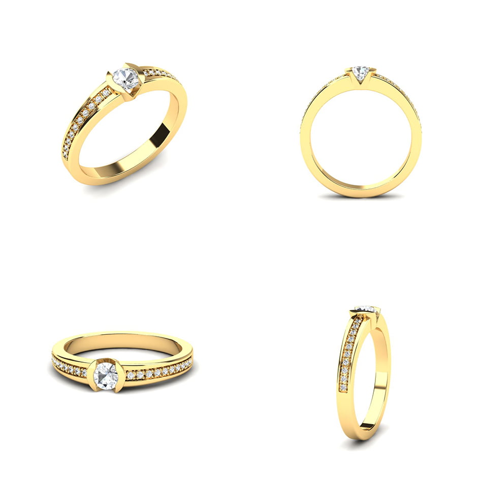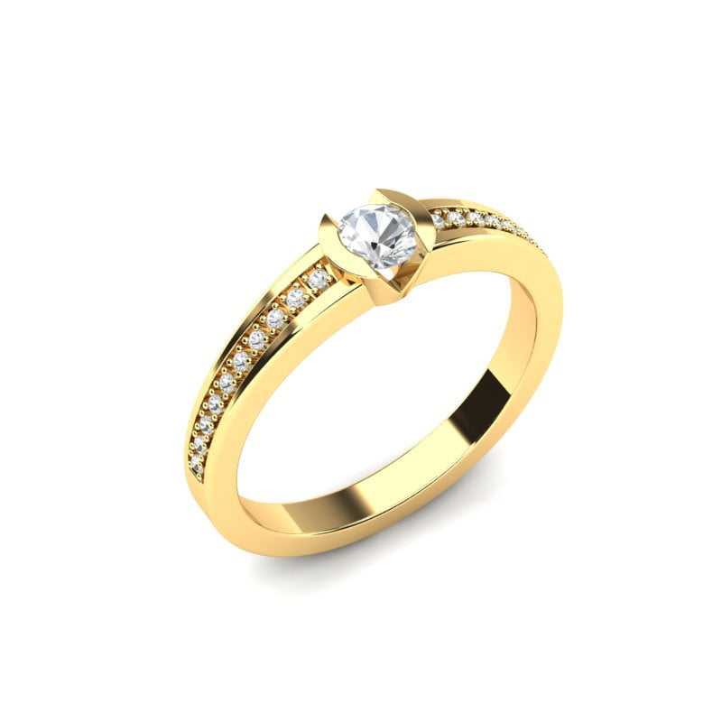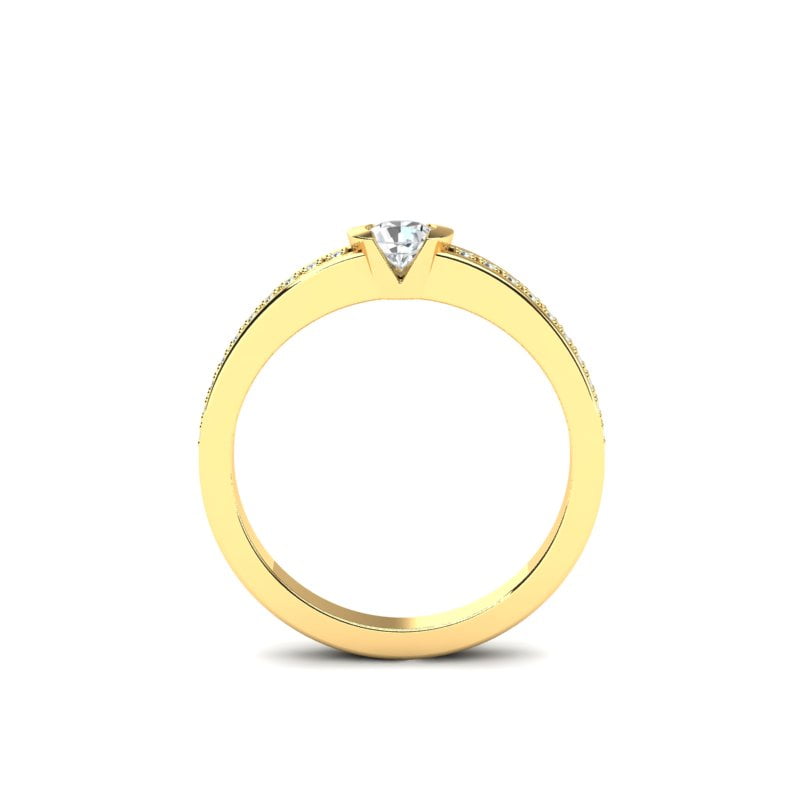 Atraktivan i beskrajno svetlucavi model vereničkog prstena postaće Vaš omiljeni komad nakita od koga se nećete odvajati. Ovaj prsten od žutog zlata ističe se sofisticiranim dizajnom, sa centralnim dijamantom koji zauzima glavnu poziciju u sredini. Dijamant je pažljivo postavljen, pružajući prstenu maksimalnu svetlost i brilijantnost. Oko centralnog dijamanta nalazi se niz manjih brilijanata koji prsten čine još upečatljivijim i glamuroznijim. Zlato sa sjajnom završnom obradom daje mu moderan i luksuzan izgled, dok brilijanti u nizu dodaju savršen ujednačenost i eleganciju. Idealno za one koji žele prsten koji kombinuje klasičnu lepotu sa savremenim dizajnom.
