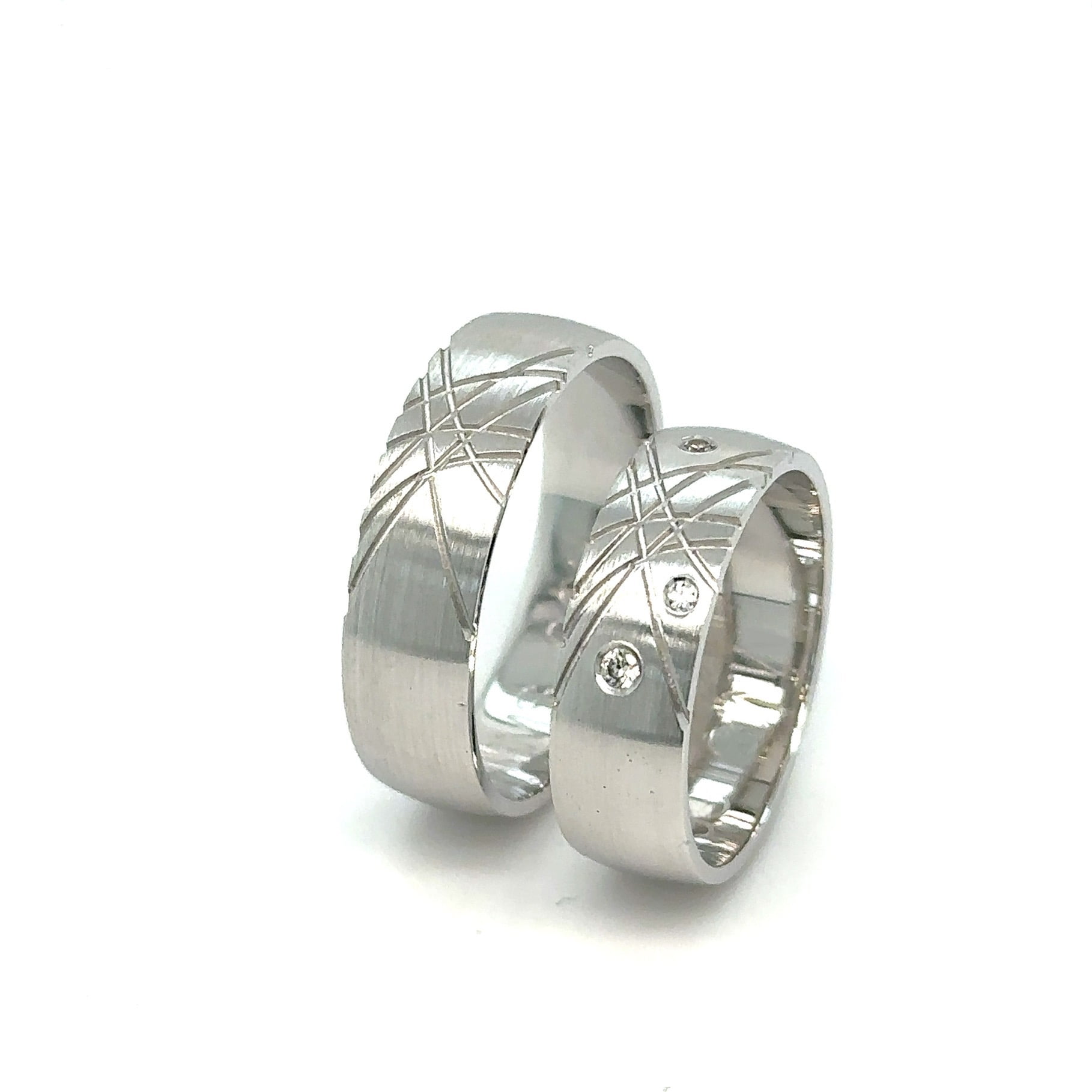 Burme od matiranog belog zlata sa diskretnim dijamantima su elegantan izbor za parove koji cene suptilnu eleganciju i moderni izgled. Svaka burma je pažljivo izrađena kako bi kombinovala rafiniranost mat završne obrade sa sjajem dijamanata, stvarajući izuzetan kontrast.