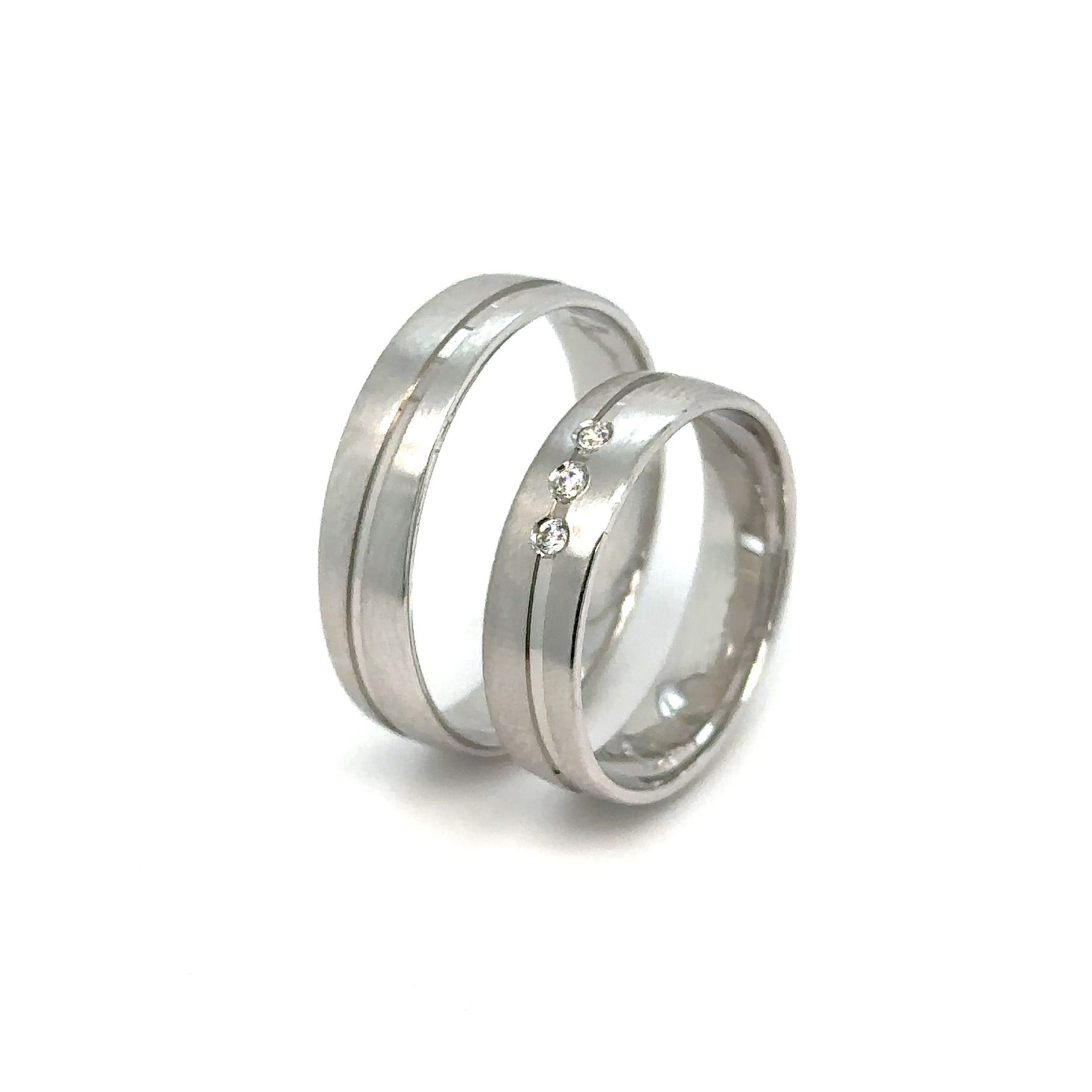 Prelepe venčane burme, izrađene od belog zlata, blago matirane površinske obrade metala, lagane i potpuno udobne za nošenje. Žensku burmu krase tri luksuzna dijamanta koji fantastično svetlucaju i privlače poglede. Model koji će Vas očarati!