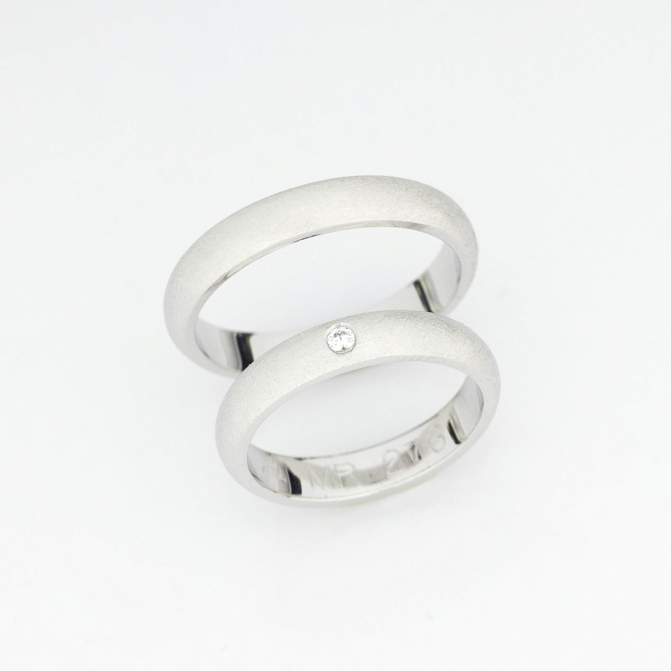 Ove burme kombinuju jednostavnu eleganciju belog zlata sa sofisticiranom mat završnom obradom, što im daje suptilan i privlačan izgled. Okrugli dijamant centralni je fokus ženske burme, ističući se svojim prirodnim sjajem i čistoćom na pozadini mat zlata. Ove burme su dizajnirane da savršeno pristaju jedna uz drugu, simbolizujući harmoniju i povezanost između partnera.