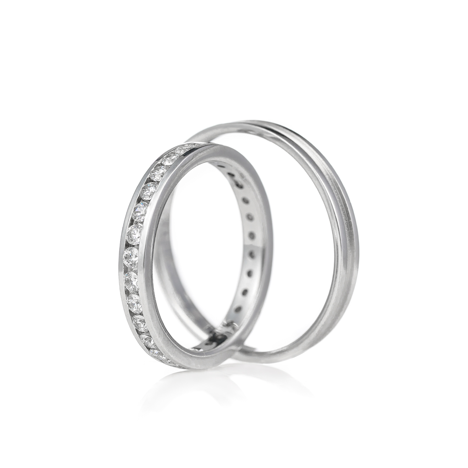 Ove elegantne burme izrađene su od belog zlata širine 3 mm, sa sjajnom i sofisticiranom završnicom. Muška burma odiše jednostavnošću i klasičnom formom, idealna za one koji biraju diskretnost i bezvremenski stil. Ženska burma ukrašena je sa čak 28 dijamanata, raspoređenih u punom nizu duž cele površine. Kombinacija luksuza i harmonije čini ih savršenim simbolom večne ljubavi i blistavog zajedničkog puta.