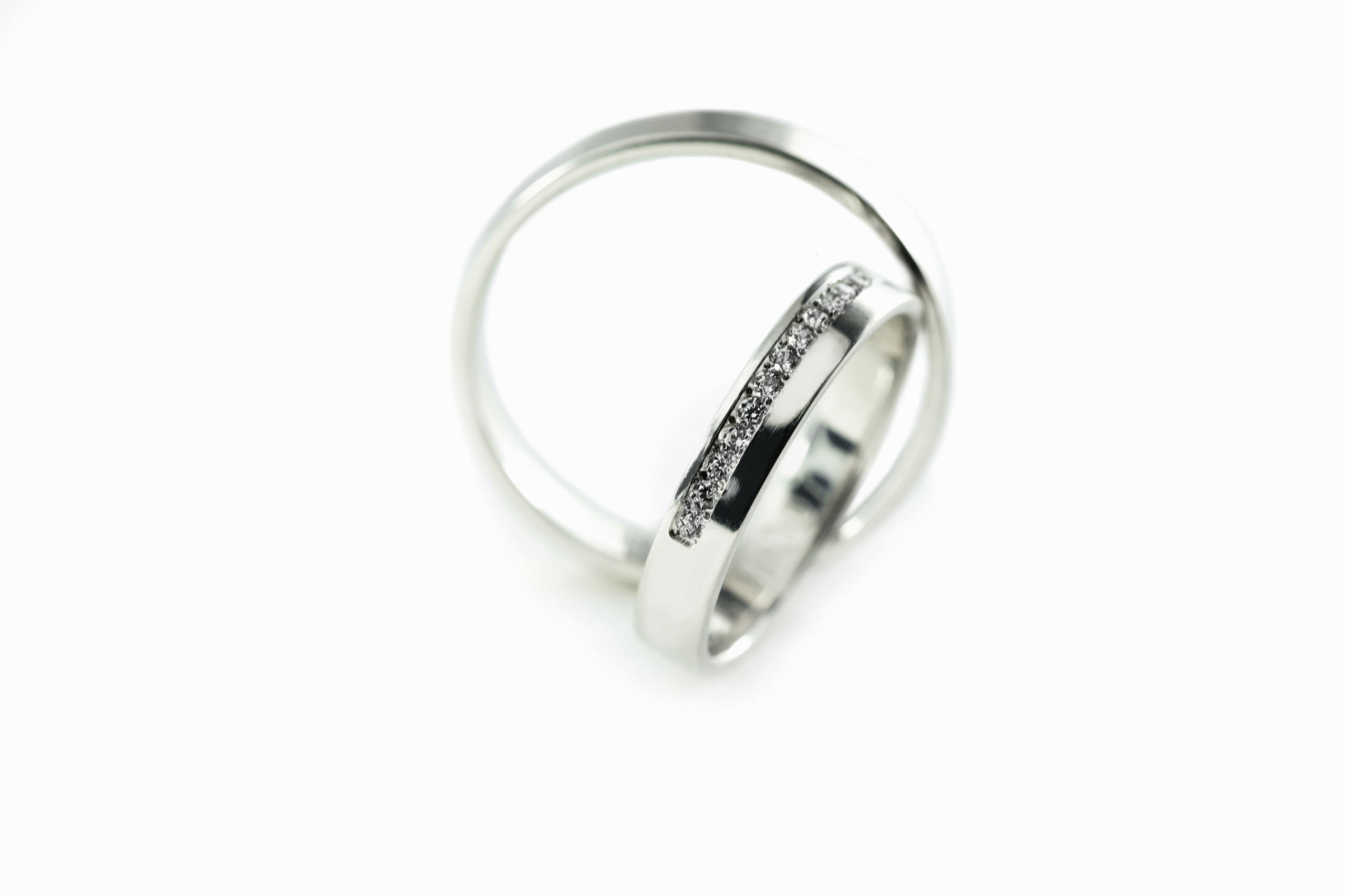 Ove burme izrađene su od belog zlata sa poliranom završnicom koja dodatno naglašava njihov moderan i prefinjen izgled. Muška burma odiše jednostavnošću i svedenom elegancijom, savršenom za one koji cene diskretan, ali otmen i bezvremenski stil. Žensku burmu krasi linija od 15 briljanata, pažljivo urezanih u nizu, što stvara suptilan, ali očaravajući svetlucavi efekat. Idealan su izbor za parove koji žele spoj tradicionalne simbolike, čistih linija i savremenog izraza u svom zajedničkom prstenu.