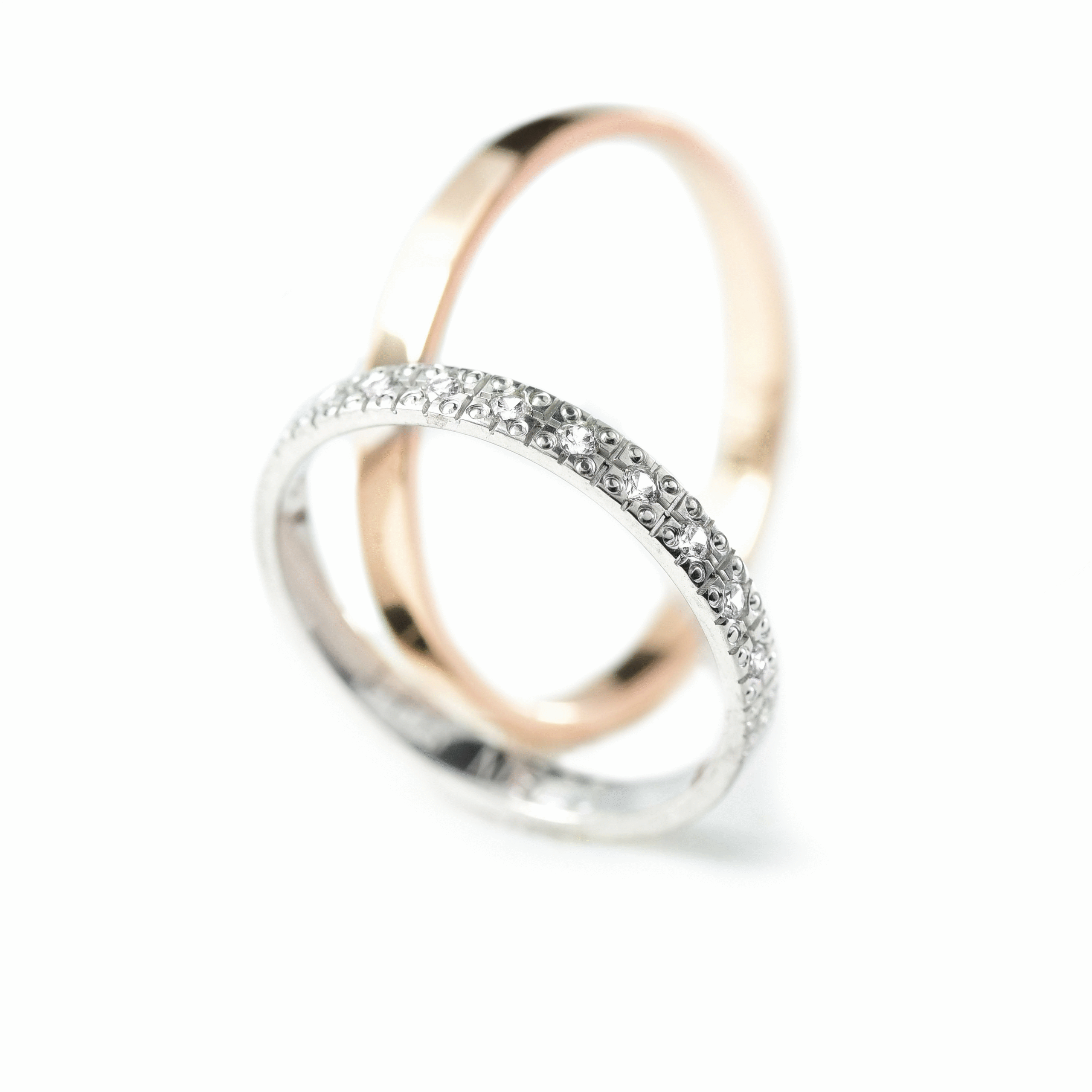 Ove burme izrađene su od zlata širine 2.5 mm, spoj elegancije i nežnog sjaja. Muška burma od roze zlata ima jednostavan, klasičan oblik sa visoko poliranom površinom. Ženska burma od belog zlata ukrašena je sa 12 briljanata raspoređenih u dve blistave linije. Savršene su za parove koji žele diskretan luksuz i simbol večne ljubavi sa stilom.