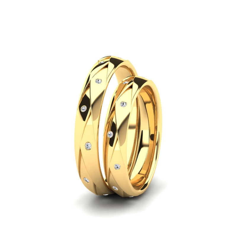 Venčane burme od žutog zlata, optočene brilijantima. Na svakoj burmi ufasovano je po dvanaest diskretnih brilijanata, koji simbolizuju dvanaest meseci u godini. Ove burme garantuju dug i uspešan brak.