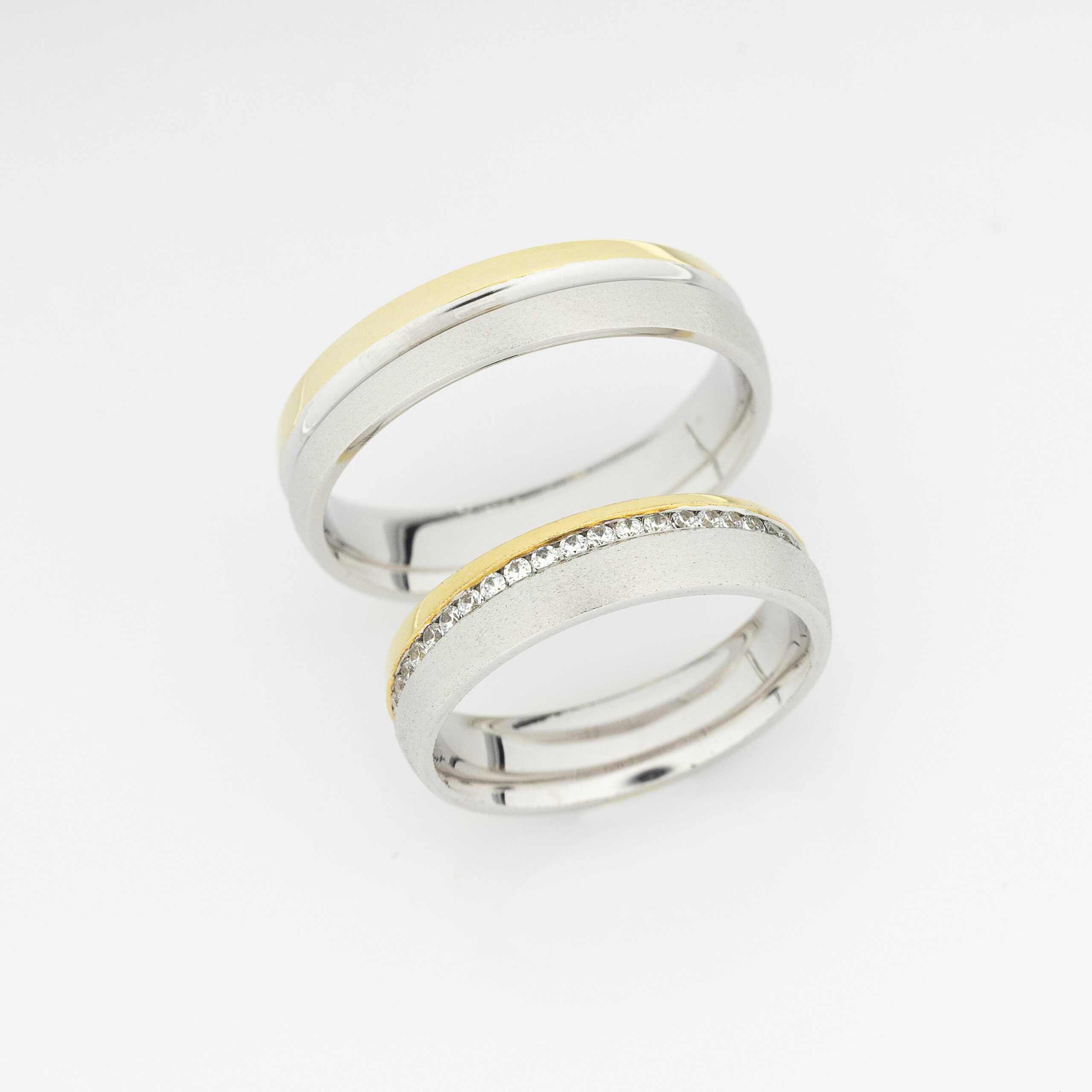 Elegantne polu-oble burme koje se ističu svojom sofisticiranom kombinacijom dve boje zlata. Središnji deo burme je istaknut kanalom, koji stvara vizualni kontrast i dodaje element sofisticirane stilizacije. Kanal ženskog modela ispunjen je prirodnim dijamantima. Ova kombinacija boja i dizajn kanala donosi savremen i luksuzan izgled, čineći burme savršenim izborom za one koji žele moderan, ali klasičan komad nakita.