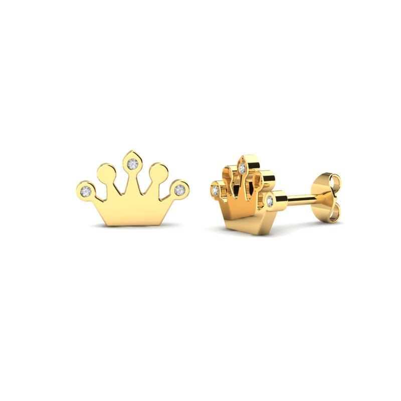 Minđuše od žutog zlata su izuzetno elegantan i delikatan komad nakita. Dizajn je inspirisan krunom, što ih čini posebno atraktivnim za dame koje vole osećaj princeze. Prirodni dijamanti dodaju blistavost i luksuzan sjaj. Minđuše su dizajnirane s posebnom pažnjom na udobnost i sigurnost, prilagođene tako da su lagane i nežne na dodir. Zatvarači su pouzdani i bezbedni, što ih čini pogodnim za svakodnevno nošenje. Ove minđuše su idealan izbor za posebne prilike poput rođendana ili drugih važnih trenutaka.