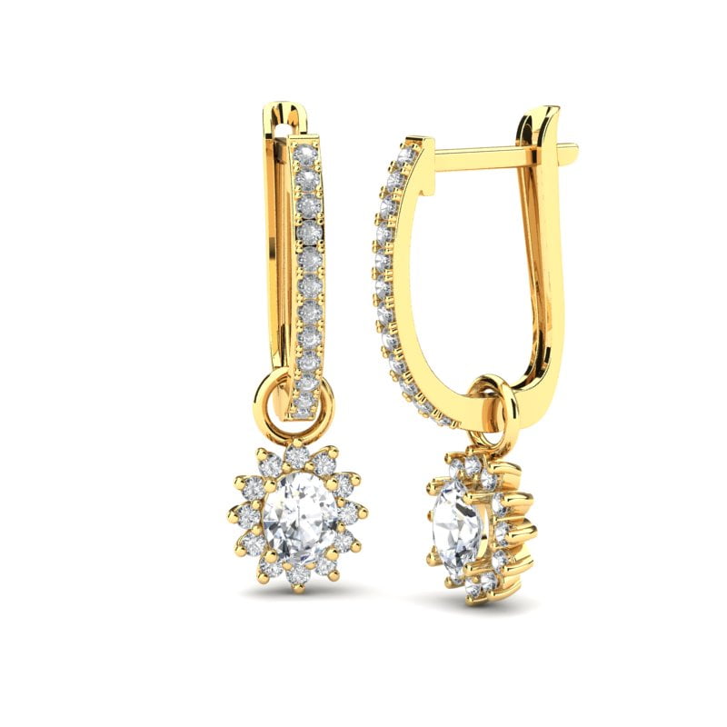 Di on the go – princeza od Velsa, Diana, čiji nakit je upravo inspiracija za ove elegantne a moćne naušnice. Centralno mesto je rezervisano za najsjajniji dijamant, ovalnog oblika. Ovakav način fasunga pruža dovoljno prostora da svetlost nesmetano prodire kroz dijamant dajući mu neverovatnu punoću boje, dok ga suptilno okružuju fini brilijanti u nizu. Dominantni motiv slobodno visi na klasičnoj naušnici. Možete ga skinuti i nositi zasebno kao samostalni privezak.