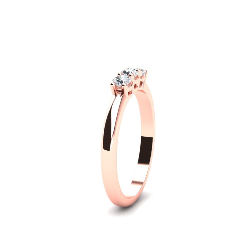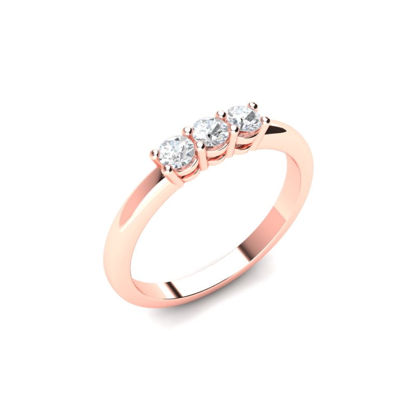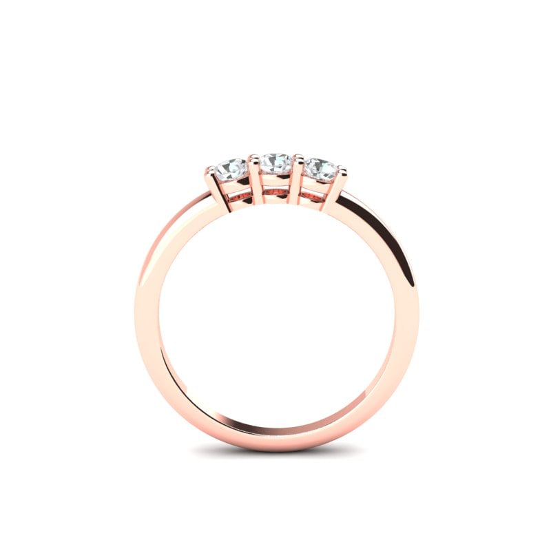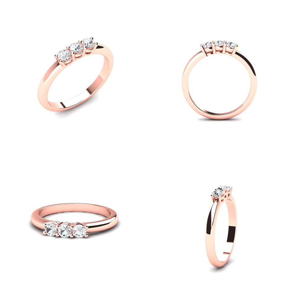 Dijamantski trio verenički prsten daće posebnu čar Vašem specijalnom događaju. Verenički prsten izrađen je od livenog, roze 14 karatnog zlata, ukrašen sa tri najsjajnija brilijanta. Verenički prsten od roze zlata sa tri dijamanta u nizu predstavlja simbol ljubavi i posvećenosti. Tri briljantna dijamanta pažljivo postavljena u niz stvaraju elegantan i sofisticiran izgled. Roze zlatni okvir pruža savršenu pozadinu za dijamante, čineći ih još svetlijima i upečatljivijima. Ovaj dizajn simbolizuje prošlost, sadašnjost i budućnost, čineći ga savršenim odabirom za posebnu priliku. Sa savršenim balansom između klasičnog i modernog stila, prsten je pravi izraz večne ljubavi.