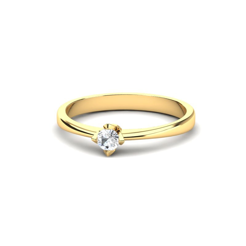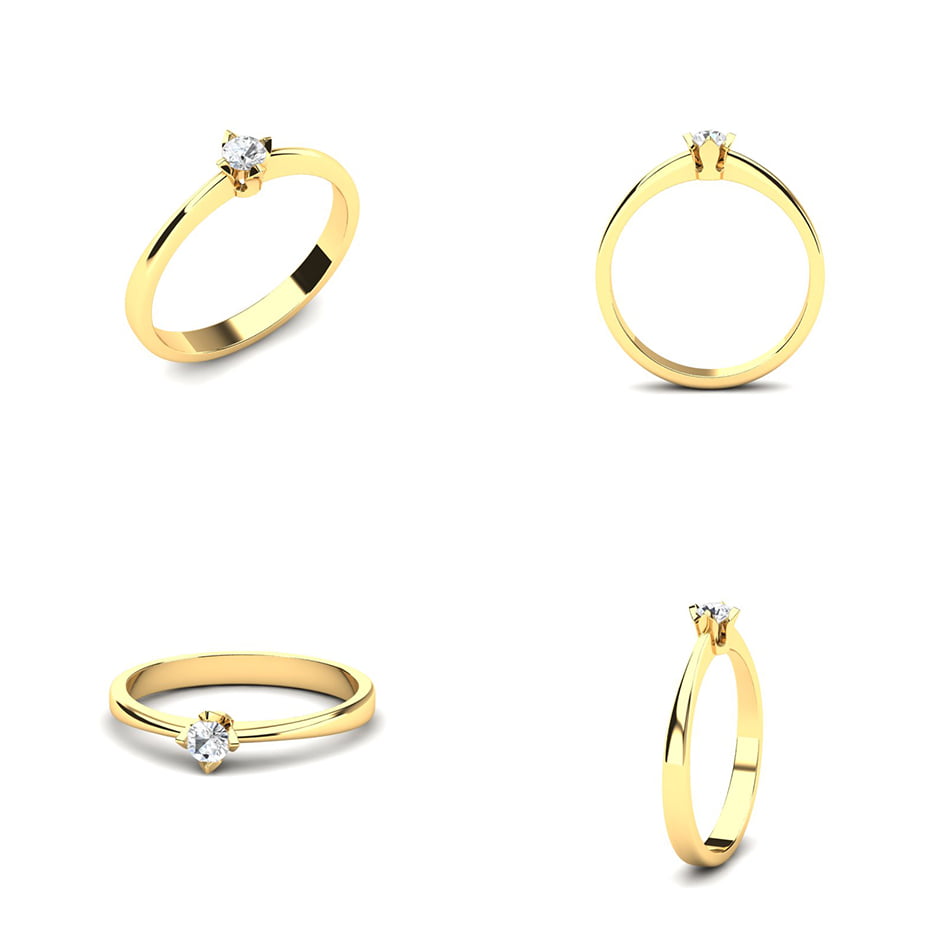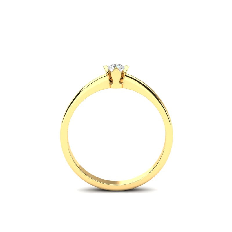 Diskretan verenički prsten od žutog zlata sa svetlucavim brilijantom. Nosi se sa uživanjem. Ovaj prsten od žutog zlata ističe se sofisticiranim dizajnom, sa centralnim dijamantom koji zauzima glavnu poziciju u sredini. Dijamant je pažljivo postavljen, pružajući prstenu maksimalnu svetlost i brilijantnost. Sa savršenim balansom između klasičnog i modernog stila, prsten je pravi izraz večne ljubavi.