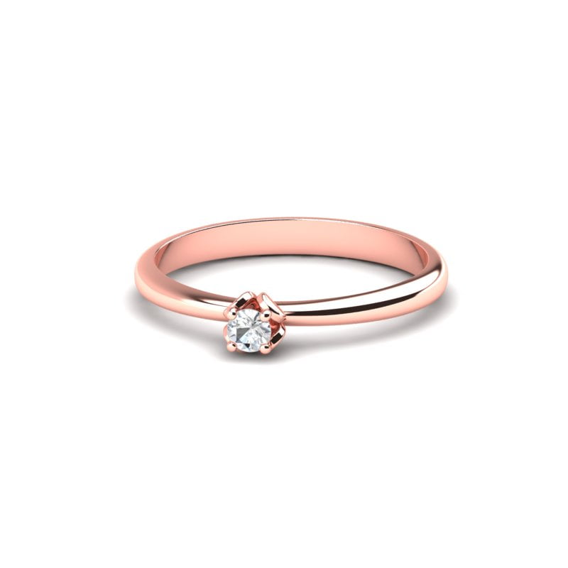 Jednostavan i elegantan, prsten izrađen od roze zlata sa atraktivnim brilijantom izuzetnog kvaliteta i čistoće. Verenički prsten od roze zlata sa prirodnim dijamantom u stilizovanim krapnama predstavlja savršen spoj modernog i klasičnog dizajna. Dijamant je postavljen u pažljivo oblikovane krapne koje daju prstenu jedinstven i elegantan izgled. Stilizovane krapne ne samo da pružaju sigurnost dijamantu, već i dodaju dinamičnost i vizualnu atraktivnost prstenu. Roze zlatni okvir, sa svojim besprekornim sjajem, naglašava lepotu dijamanta, stvarajući zapanjujući vizuelni efekat.