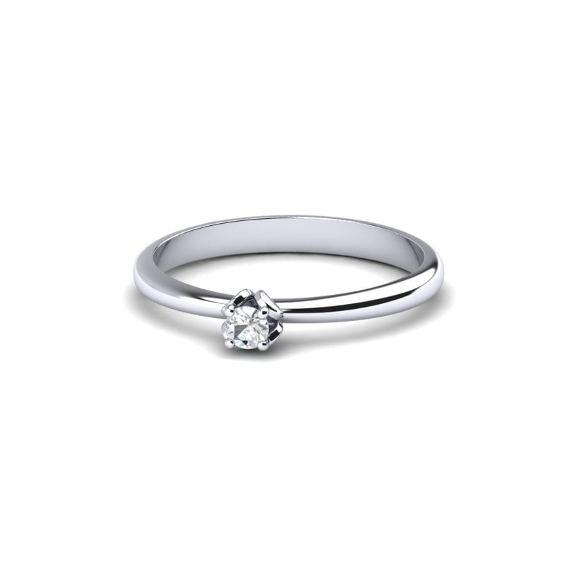 Jednostavan i elegantan, prsten izrađen od belog zlata sa atraktivnim brilijantom izuzetnog kvaliteta i čistoće. Verenički prsten od belog zlata sa prirodnim dijamantom u stilizovanim krapnama predstavlja savršen spoj modernog i klasičnog dizajna. Dijamant je postavljen u pažljivo oblikovane krapne koje daju prstenu jedinstven i elegantan izgled. Stilizovane krapne ne samo da pružaju sigurnost dijamantu, već i dodaju dinamičnost i vizualnu atraktivnost prstenu. Beli zlatni okvir, sa svojim besprekornim sjajem, naglašava lepotu dijamanta, stvarajući zapanjujući vizuelni efekat.