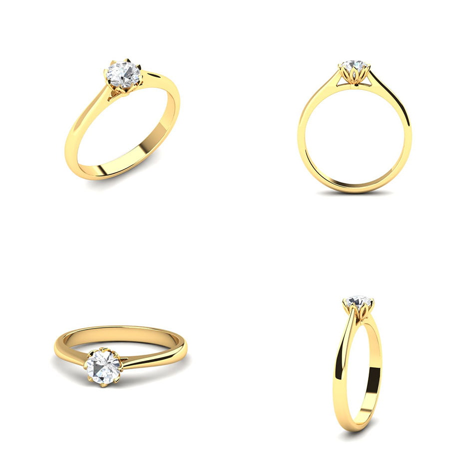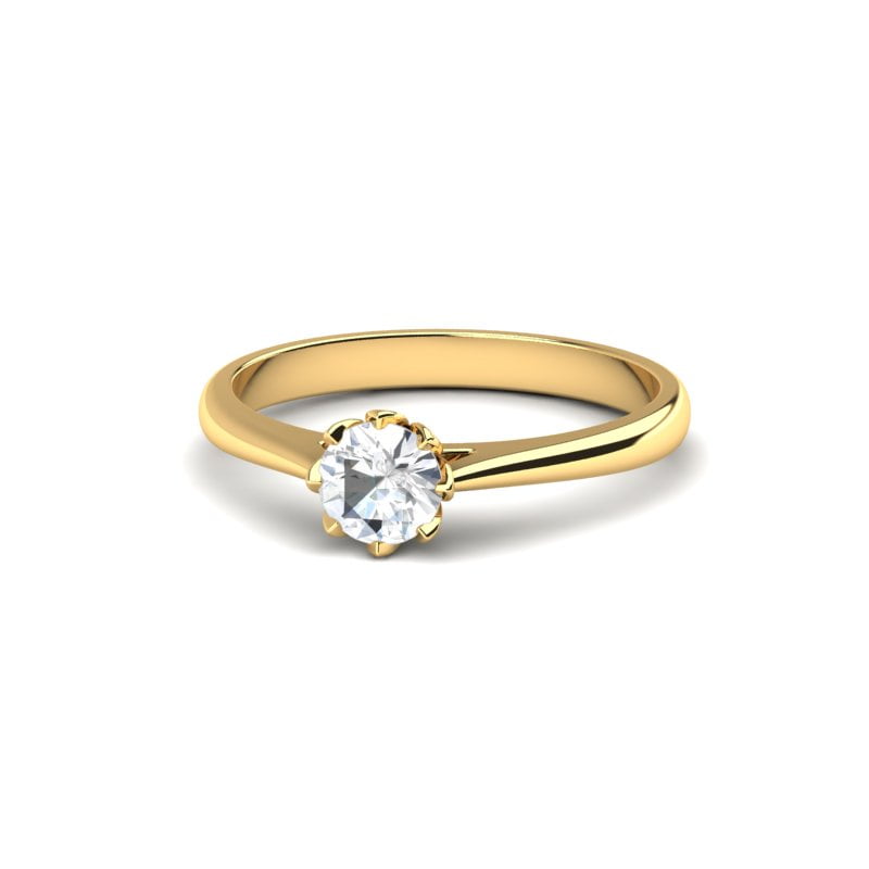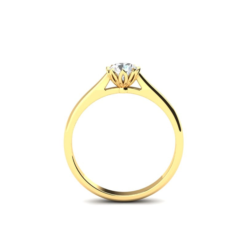 Prsten posebnog dizajna, izrađen od visokokvalitetnog žutog zlata koje savršeno ističe sjaj i čistoću dijamanta. Njegova jednostavna, ali sofisticirana forma čini ga savršenim izborom za svaku priliku. Klasična elegancija garantuje da će ovaj prsten zauvek ostati simbol ljubavi i večne privrženosti. Sjaj dijamanta će neprestano podsećati na svetlost i čistoću vaše ljubavi, čineći ovaj verenički prsten dragocenim simbolom vašeg zajedničkog putovanja.