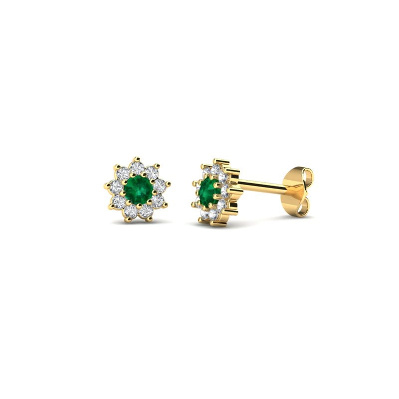 Fiore naušnice inspirisane florom. Spoj centralnog smaragda optočenog dijamantima i žutog zlata čini ovaj model minđuša jedinstvenim. Vanvremenska lepota latica i upečatljivost cvetnih pigmenata vekovima su omiljena dizajnerska inspiracija. Besprekorno senzualni i neodoljivo živopisni, cvetni motivi važe za najbolje saveznike ženstvenosti u modi. Darujte ih sebi ili dragoj dami.