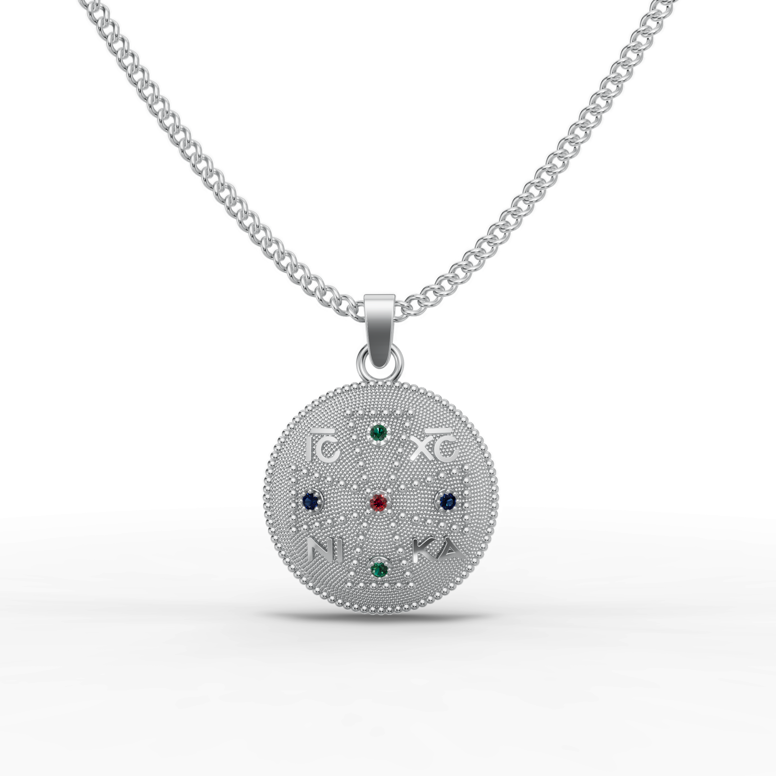 Privezak od 14k belog zlata, sa motivom Isus Hristos NIKA, predstavlja spoj duhovnosti, umetnosti i vrhunske izrade. Ovaj jedinstveni komad nakita izrađen je sa izuzetnom pažnjom na detalje. Motiv u reljefu odiše dostojanstvom, mirom i snagom, simbolizujući pobedu vere i večne svetlosti.
