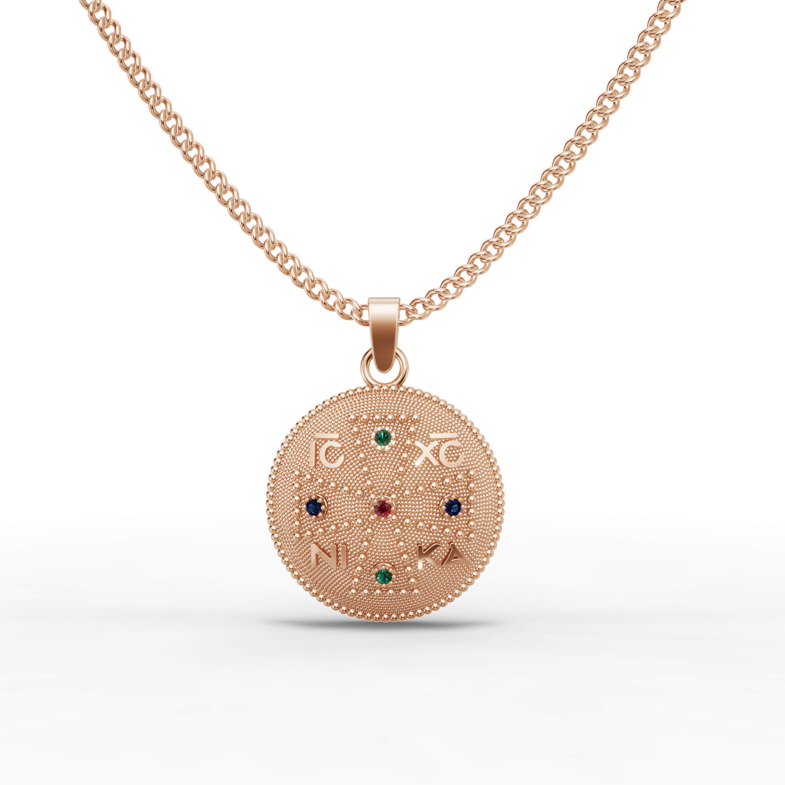 Originalni privezak sa reljefno izrađenim krstom, na najlepši mogući način predstavlja pobedu Isusa Hrista, oplemenjen dragim kamenjem.