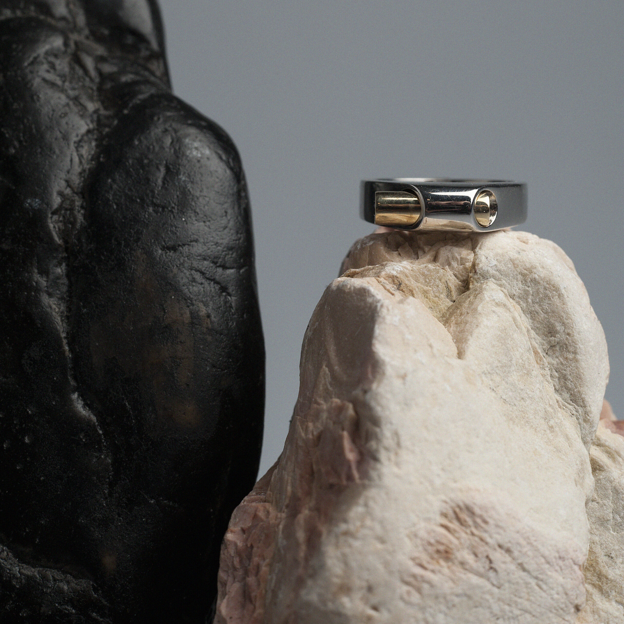 Prsten u kombinaciji dve boje zlata, odiše savremenom elegancijom, inovacijom i luksuznim detaljem.