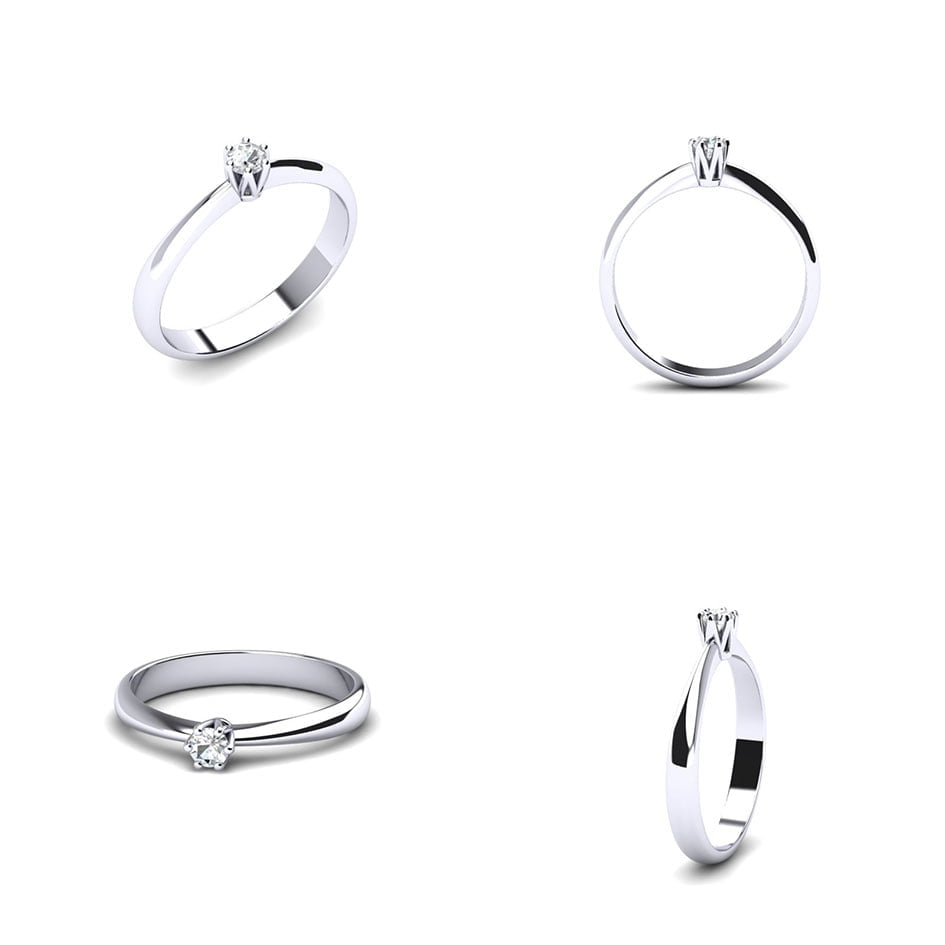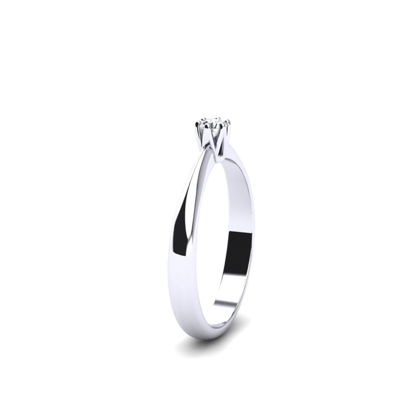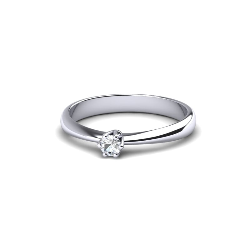 Centralni element prstena je prirodni dijamant, pažljivo postavljen u središte. Njegov blistav i čist izgled odmah privlači pažnju i postaje dominantna tačka prstena. Šest krapni čvrsto drže dijamant na mestu, pružajući sigurnost i stabilnost, ali istovremeno omogućavaju maksimalan prolazak svetlosti kroz kamen sa svih strana. Tako dijamant dobija pun sjaj i zrači impresivnom briljantnošću.