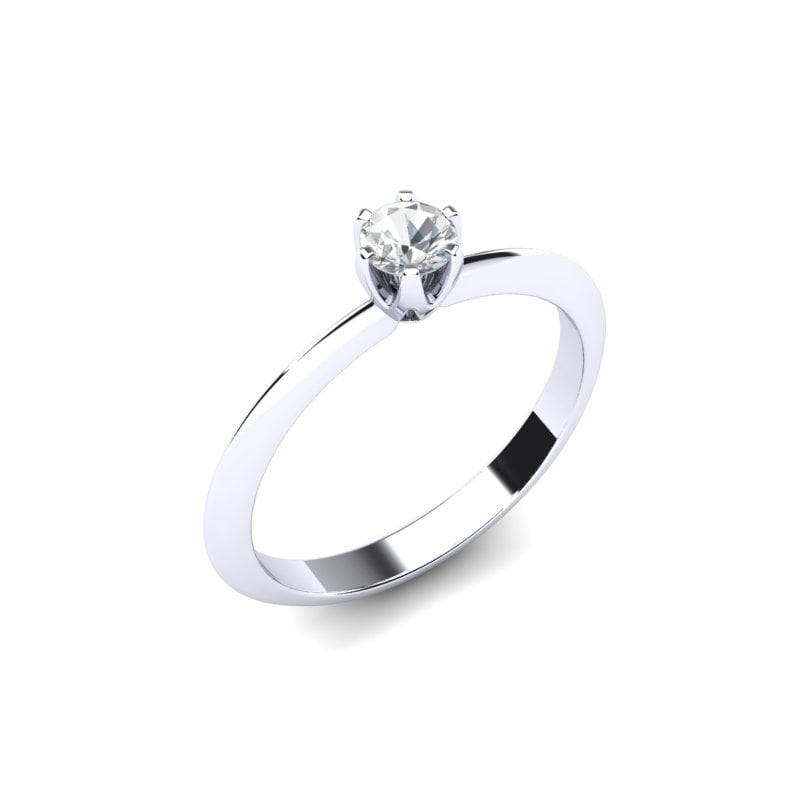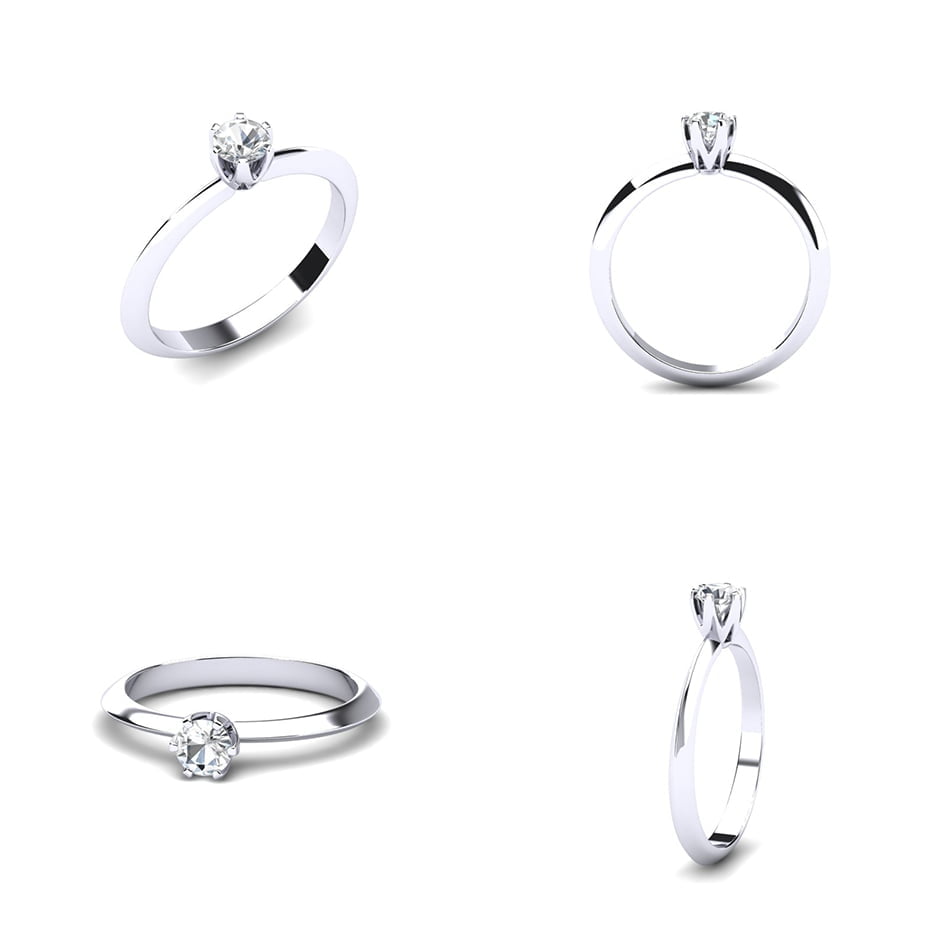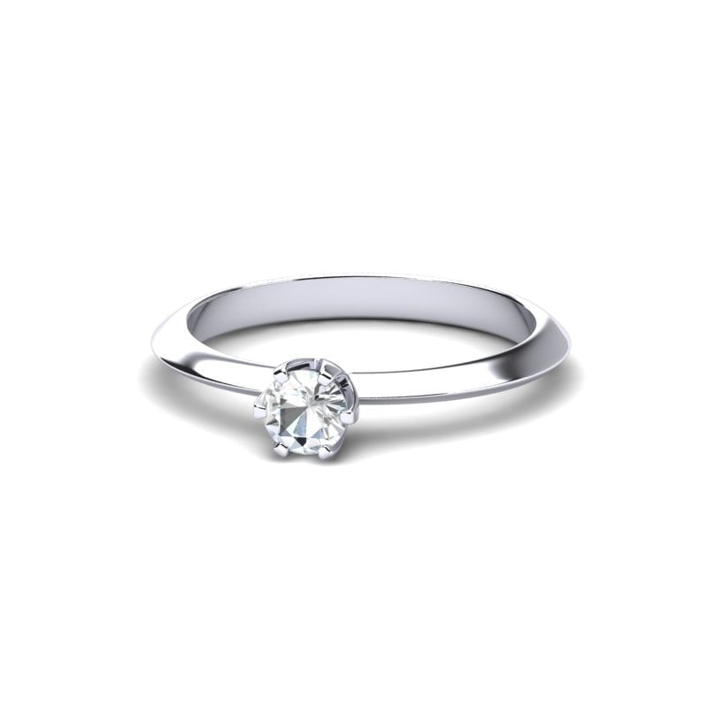 Prsten je jednostavan i minimalistički, sa glatkom površinom koja zrači prelepim, hladnim sjajem belog zlata. Centralni dijamant pažljivo je smešten u središte prstena i odmah privlači pažnju svojim visokim sjajem.