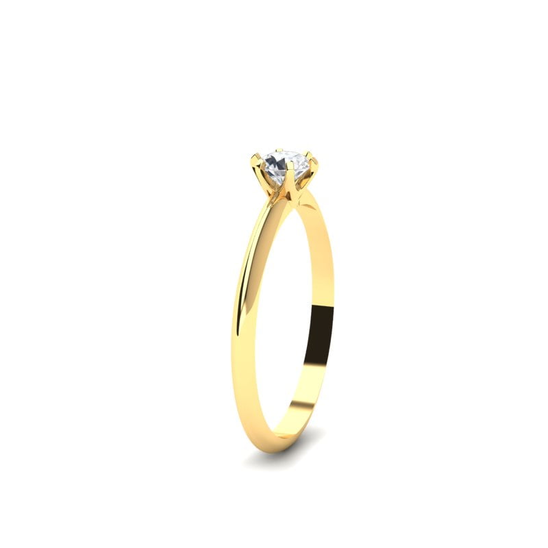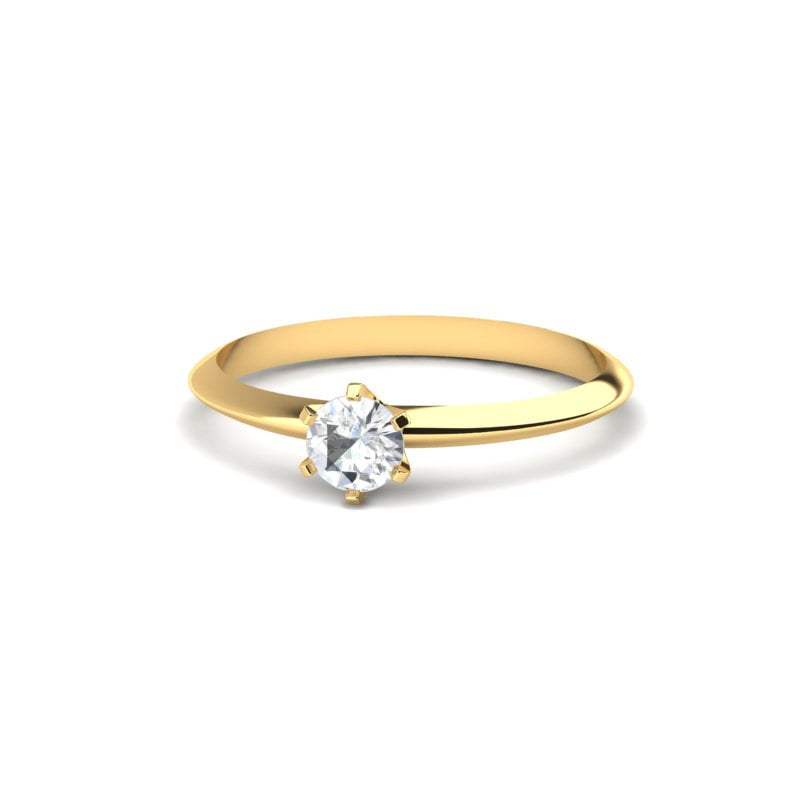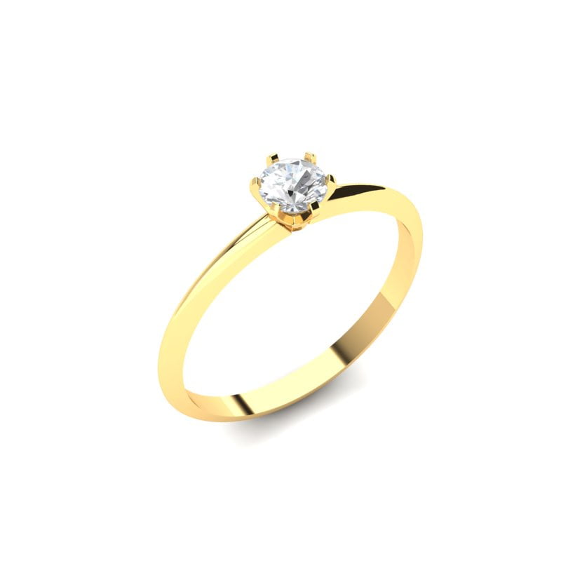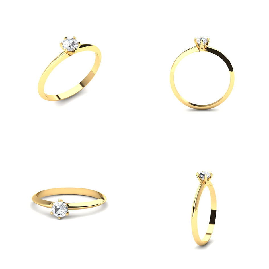 Verenički prsten sa dijamantom predstavlja spoj elegancije, luksuza i suptilne lepote. Prsten je izrađen od visokokvalitetnog žutog zlata, čiji sjaj dodatno ističe lepotu dijamanta. Centralni element prstena je prirodni dijamant, postavljen u središte, koji svojim blistavim i čistim izgledom odmah privlači pažnju. Šest krapne čvrsto drže dijamant na mestu i omogućavaju da svetlost prolazi kroz kamen sa svih strana, čineći ga još svetlijim i atraktivnijim.
