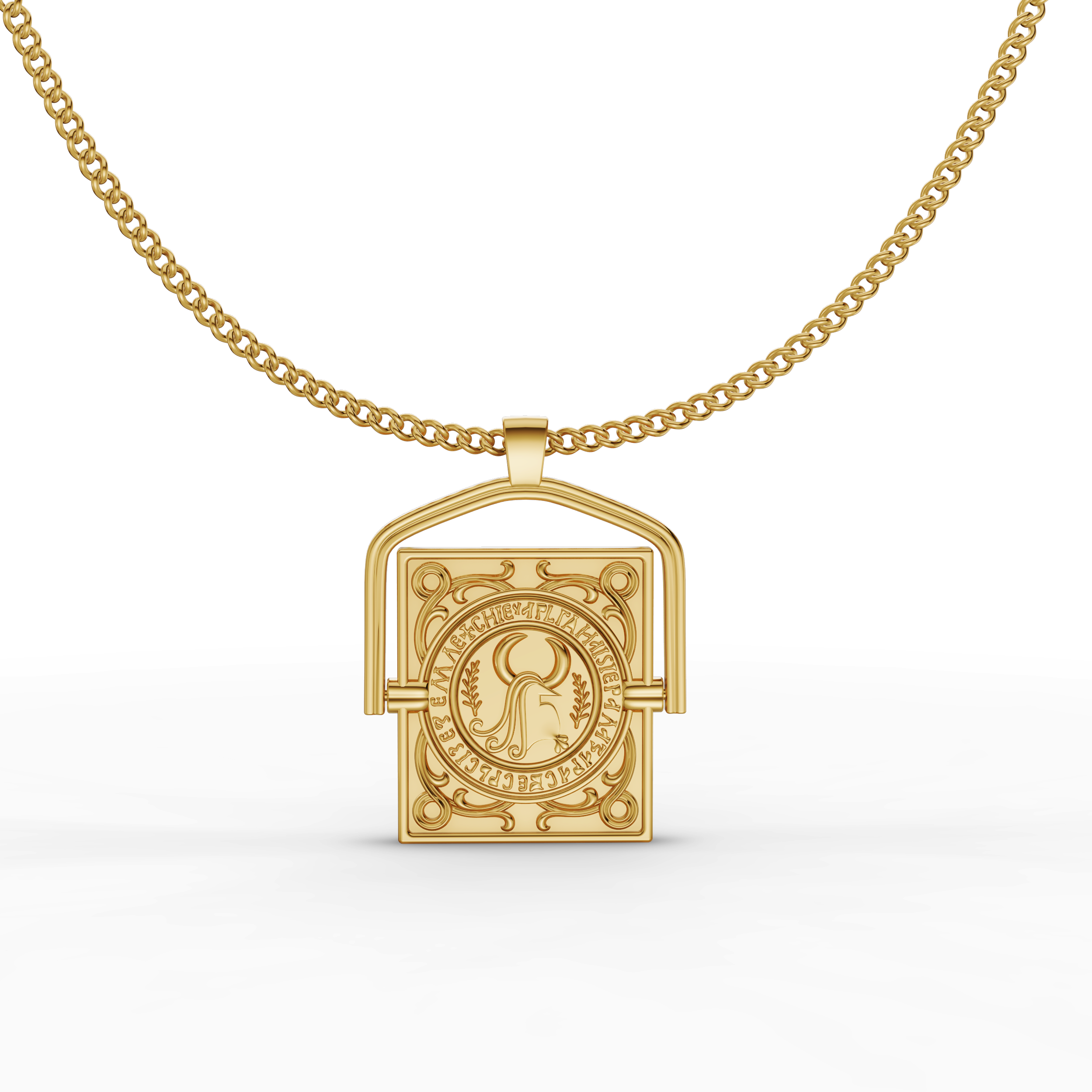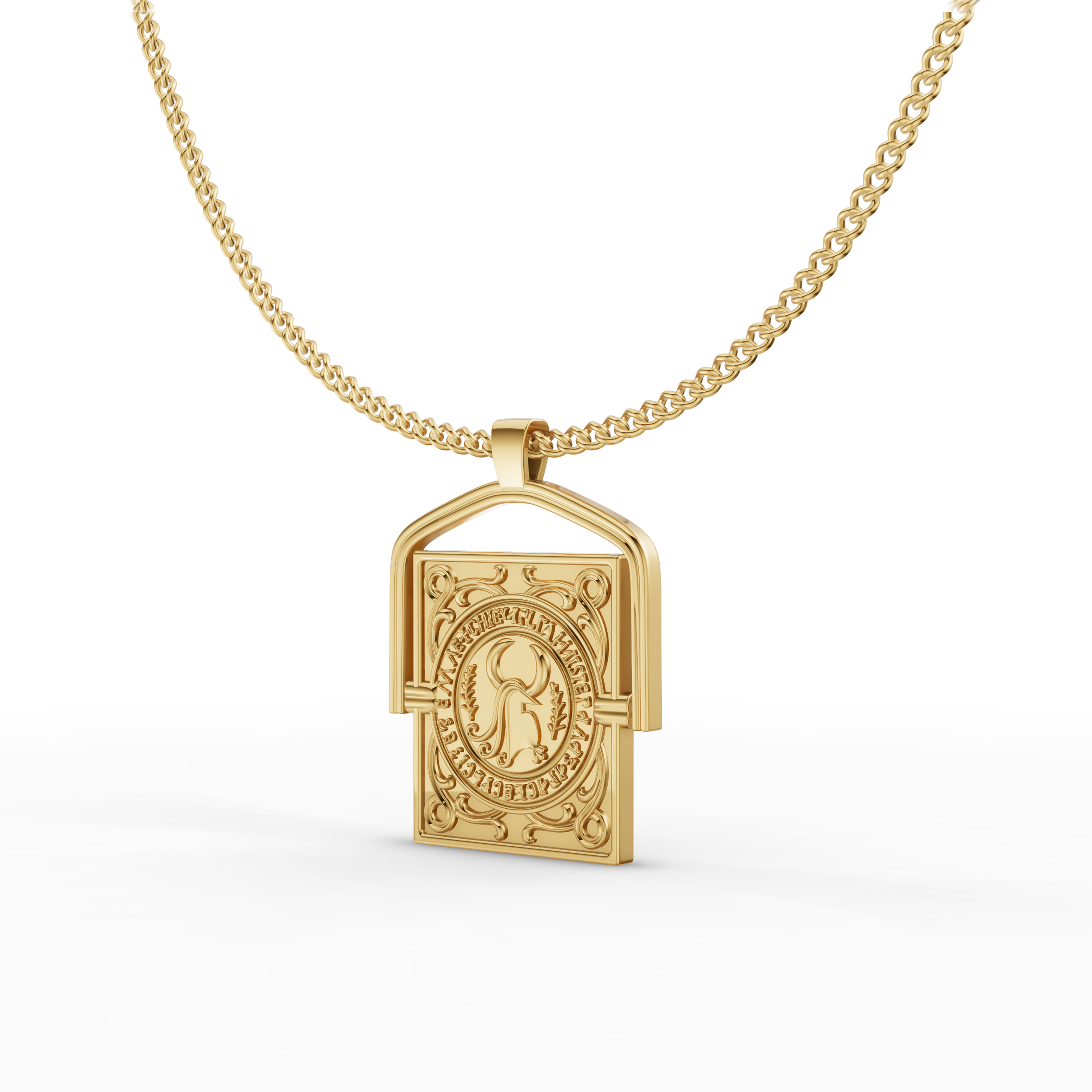 Ogrlica od žutog zlata sa reljefno izrađenim motivom pečatnjaka Kneza Lazara predstavlja spoj istorijskog nasleđa, vrhunskog zanatstva i simbolike snage i pravde. Ovaj jedinstveni komad nakita izrađen je s posebnom pažnjom na detalje. Ističe autentičnu formu i precizno oblikovane reljefne elemente inspirisane originalnim pečatnjakom slavnog srpskog vladara.