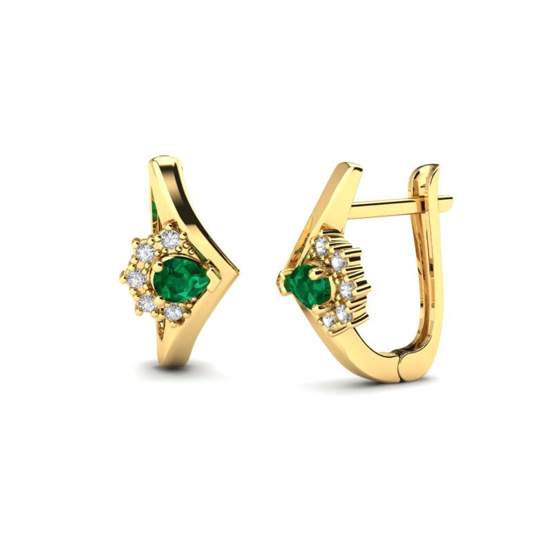 Ove prefinjene minđuše kombinuju eleganciju zlata visoke čistoće sa sjajem prirodnih dragulja. Svaka minđuša je ukrašena pažljivo odabranim smaragdima i dijamantima koji pružaju blistavi sjaj i dodatnu dimenziju dizajnu. Sa sigurnom engleskom kopčom za udobno nošenje, ove minđuše su savršen spoj klasične elegancije i suptilne luksuznosti. Idealne za svaku priliku.