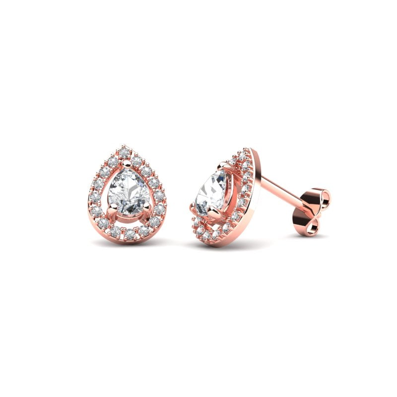 Lady Di naušnice – princeza od Velsa, Diana inspiracija je za ove sofisticirane, elegantne a moćne naušnice, izrađene u roze zlatu. Centralno mesto je rezervisano za veličanstveni dijamant, pear oblika. Ovakav način fasunga centralnog kamena – Prong, pruža dovoljno prostora da svetlost nesmetano prodire kroz dijamant dajući mu neverovatan odsjaj. Fini brilijanti u nizu suptilno okružuju dijamant, dodatno pojačavajući intenzitet i dubinu boje, njegovog veličanstva – dijamanta.