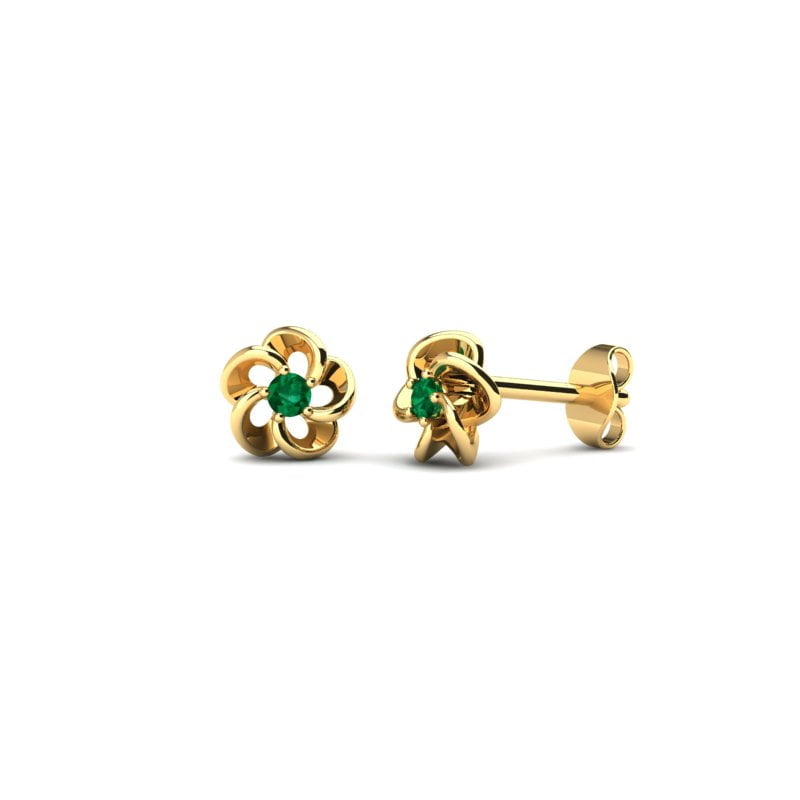 Marguerite naušnice od žutog zlata sa bogatim, netretiranim prirodnim smaragdom. Inspirisane floralnim motivom, veruje se da zrače optimizmom, otklanjaju stres i donose uživanje i dug život. Nose i simboliku ljubavi.