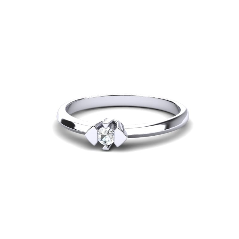 Zanimljiv model vereničkog prstena, izliven u beloj leguri a oplemenjen blistavim dijamantom. Dizajn ovog prstena je elegantan i suptilan, s fokusom na jednostavnost i lepotu prirodnog dijamanta. Njegova elegantna forma savršeno kombinuje moderni stil i klasičnu lepotu.