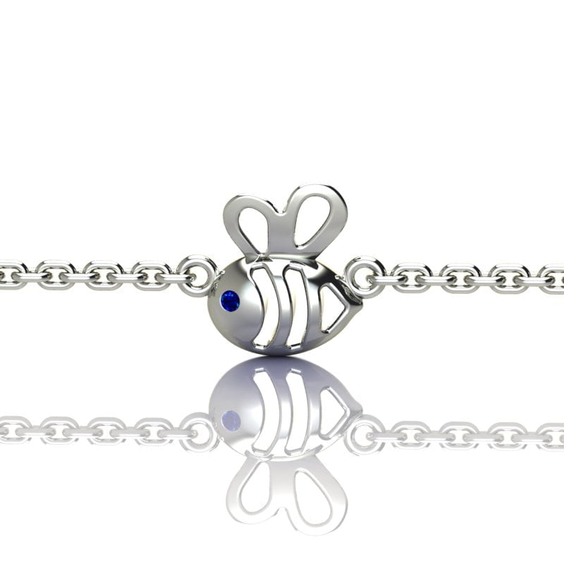 Elegantna zlatna narukvica sa prefinjenim dizajnom, u čijem se centru nalazi nežno izrađena pčelica – simbol marljivosti, prosperiteta i prirodne lepote. Pčelica je dodatno ukrašena brižljivo odabranim dragim kamenom, safirom, koji svojim sjajem privlači poglede i dodaje notu raskoši ovom jedinstvenom komadu nakita. Savršena za osobe koje cene eleganciju, simboliku i vrhunsku izradu, ova narukvica predstavlja izuzetan spoj prirode i luksuza. Idealan izbor za poklon ili kao lični talisman koji donosi sreću i snagu.