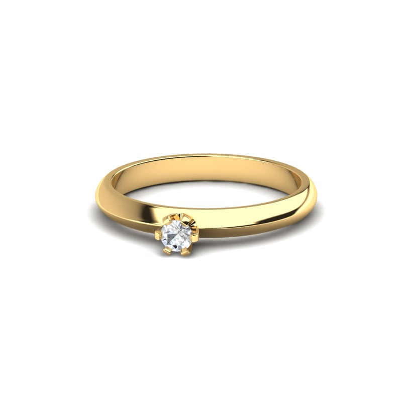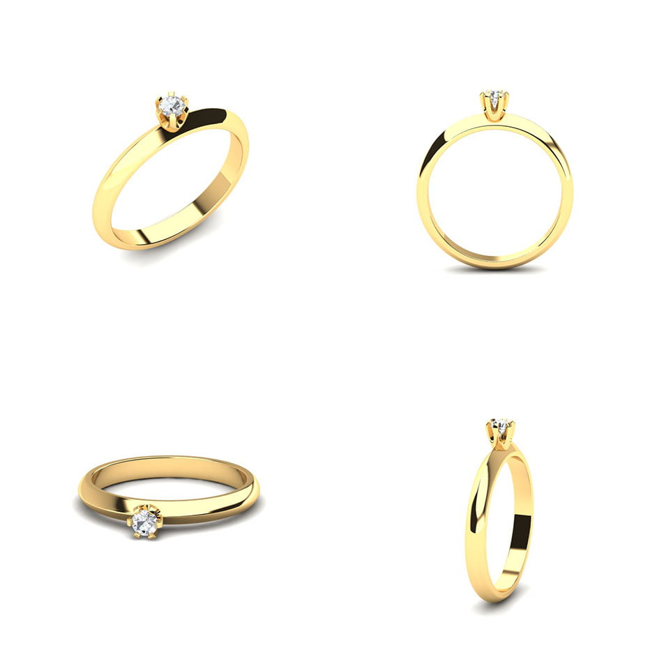 Svedena klasika – verenički prsten od žutog zlata sa brilijantom, unutar šest krapni. Idealan ukras za nežne ruke.