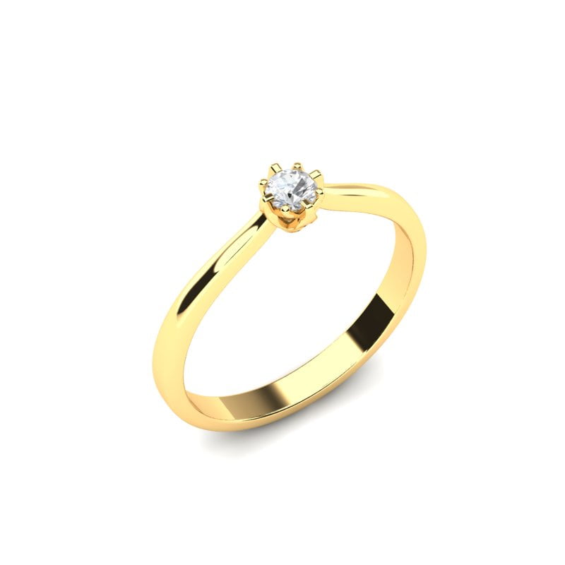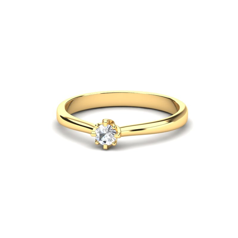 Njegova jednostavnost i prefinjenost omogućavaju da se dijamant istakne kao centralni fokus, dok elegantne linije prstena dodaju diskretnu sofisticiranost. Svaki pokret ruke otkriva novu igru svetlosti, stvarajući očaravajući sjaj. Ovaj prsten je simbol nežnosti, trajne ljubavi i posvećenosti, savršen za dame koje žele nakit koji kombinuje eleganciju i emociju.