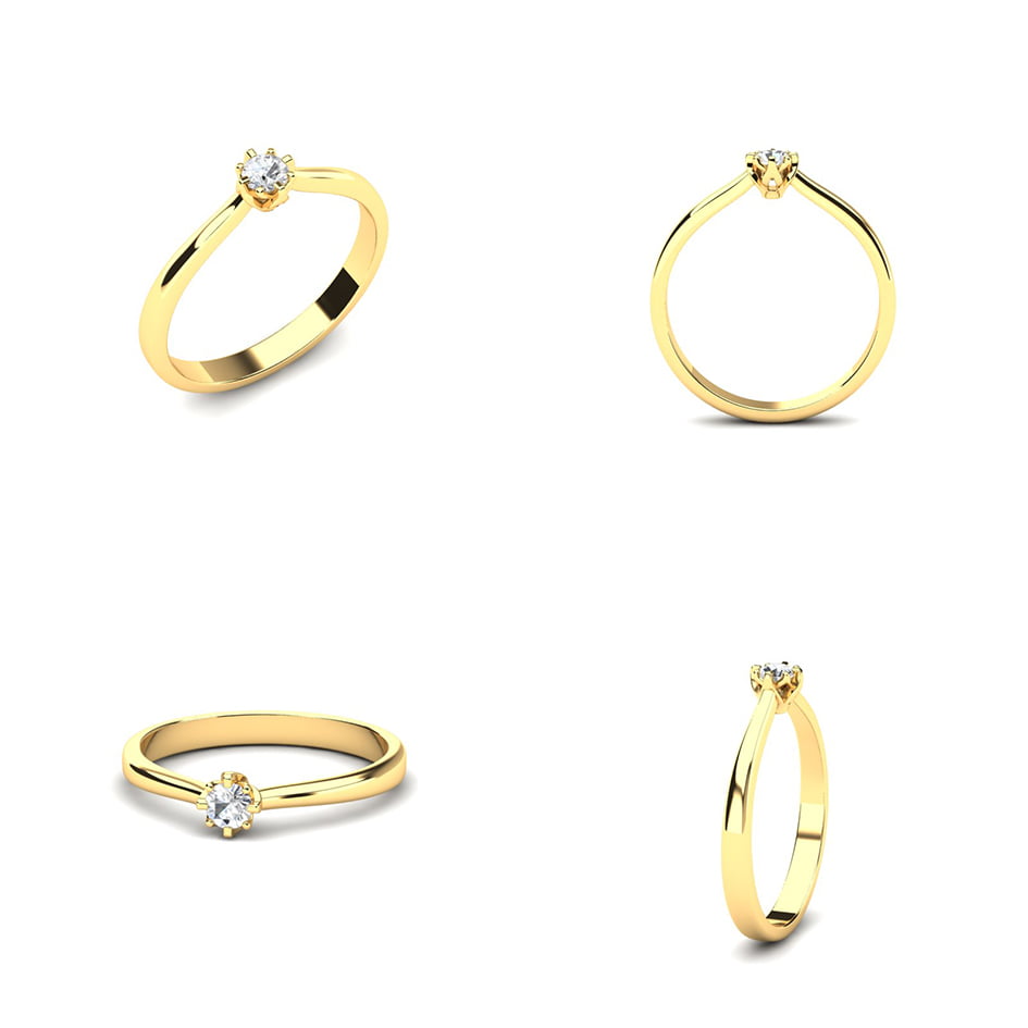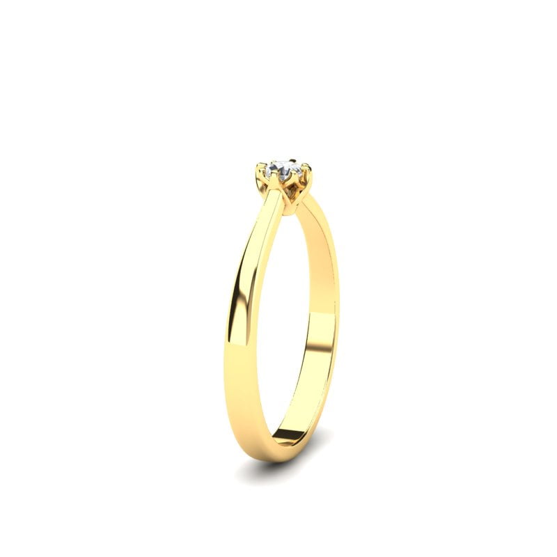Zavodljiv i nežan verenički prsten od žutog zlata, sa blistavim dijamantom koji nežno drži osam elegantnih krapni. Ovaj bezvremenski dizajn omogućava da dijamant maksimalno hvata i reflektuje svetlost, ističući njegovu prirodnu svetlucavost i dubinu.