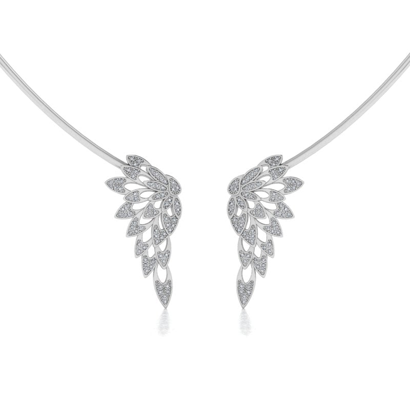 Raskošna ogrlica neobičnog dizajna, nagrađena na prestižnom međunarodnom sajmu nakita „Sjaj“, ukrašena najfinijim brilijantima, u obliku krila. Sa ovakvim komadom nikada nećete proći neopaženo. Njen jedinstveni dizajn stvara zapanjujući vizuelni efekat, savršeno uklapajući eleganciju i sofisticiranost. Brilijanti koji je krase pružaju izuzetnu snagu i svetlost, čineći ogrlicu ne samo nakitom, već i umetničkim delom. Svaka detaljno urađena linija dodaje dubinu i ravnotežu, čineći ovaj komad nezaboravnim izborom za posebne prilike.