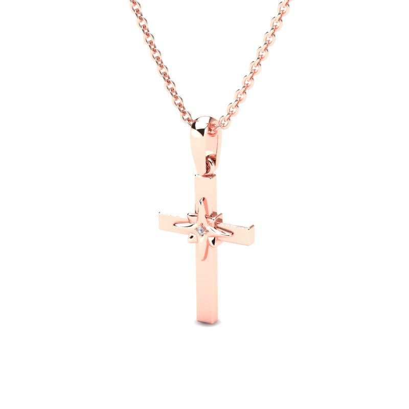 Ova prelepa ogrlica od roze zlata sa motivom krsta odiše elegancijom i sofisticiranošću, idealno kombinujući duhovni značaj i moderan dizajn. Centralni detalj predstavlja diskretno postavljen dijamant koji dodatno ističe lepotu i sjaj nakita, dajući mu luksuzan izgled. Precizna izrada i visokokvalitetni materijali čine ovu ogrlicu savršenim izborom za sve prilike, bilo da je nosite svakodnevno ili uz svečane odevne kombinacije. Njena simbolika krsta i suptilan dizajn čine je emotivno vrednim i stilskim dodatkom koji nosi duboko značenje i vanvremensku estetiku.