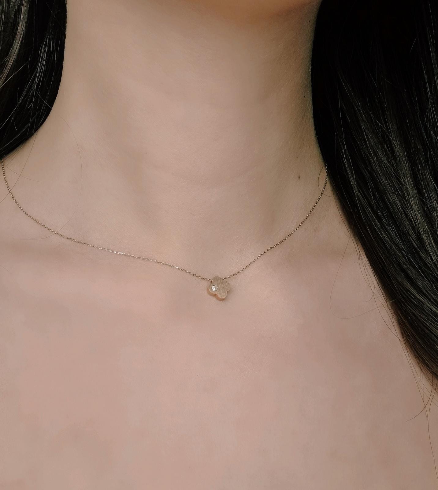 Ova ogrlica od roze zlata sa diskretnim priveskom u obliku deteline sa četiri lista odiše suptilnom elegancijom i prefinjenim šarmom. Simbol sreće i pozitivne energije, detelina je oblikovana u nežnoj formi koja savršeno prati minimalistički dizajn ogrlice. Svetlucavi dijamant u središtu priveska dodaje diskretan, ali primetan sjaj, dajući komadu luksuznu notu bez prenaglašavanja.