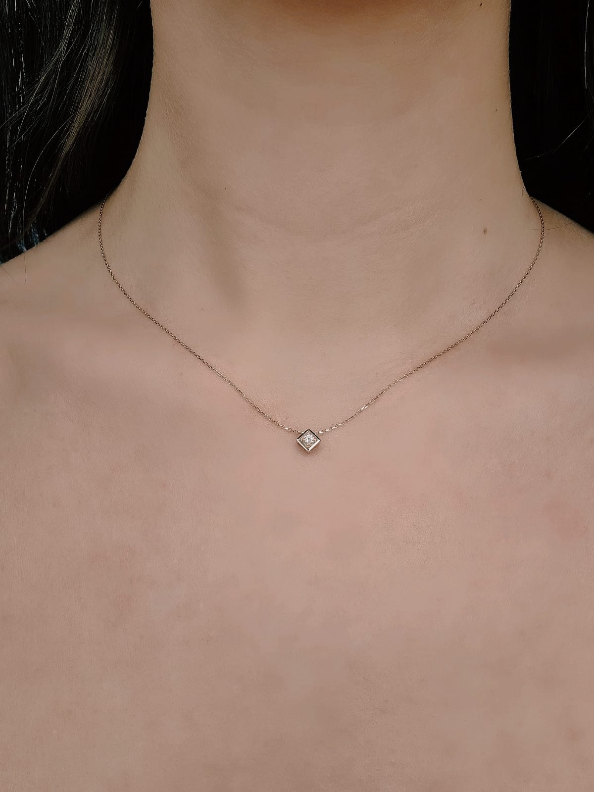 Ova nežna ogrlica od roze zlata sa dijamantom odiše suptilnim luksuzom i bezvremenskom elegancijom, čineći je savršenim izborom za svakodnevno nošenje.