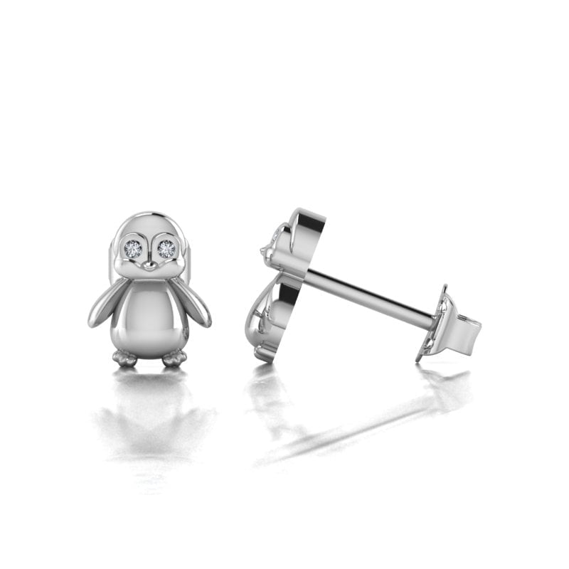 Šta pokloniti za prvi rođendan? Savršeni poklon, minđuše sa pingvinom, zanimljive i omiljene našim devojčicama. Model je izrađen od belog zlata i ukrašen blistavim brilijantima. Darujte nakit neprolazne vrednosti i lepote.