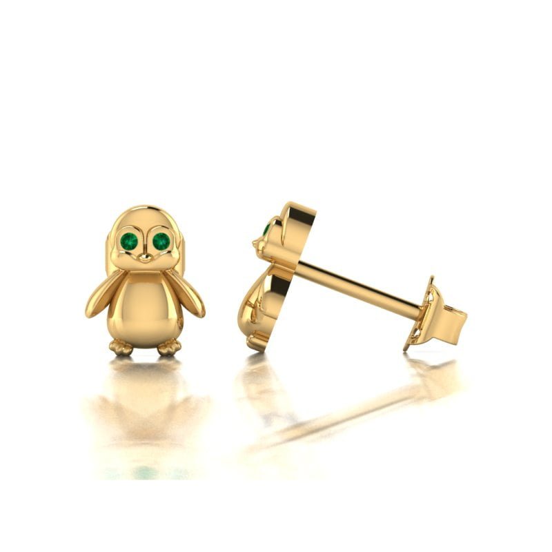 Šta pokloniti za prvi rođendan? Savršeni poklon, minđuše sa pingvinom, zanimljive i omiljene našim devojčicama. Model je izrađen od žutog zlata i ukrašen prirodnim smaragdima. Darujte nakit neprolazne vrednosti i lepote.