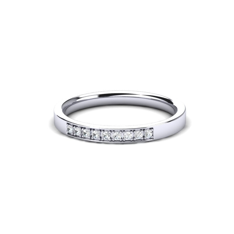 Svaki dijamant je pažljivo smešten u precizno oblikovan urezani okvir. Na taj način svetlost neprekidno igra kroz kamenje i stvara očaravajući sjaj iz svakog ugla. Čitav prsten odiše harmonijom i ravnotežom, spajajući klasičnu eleganciju sa savremenim linijama.