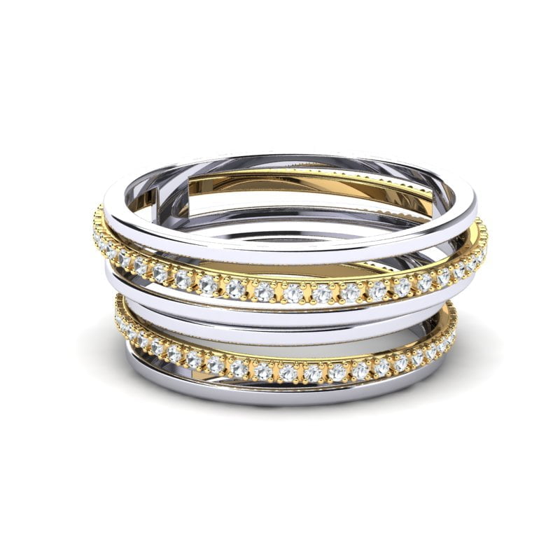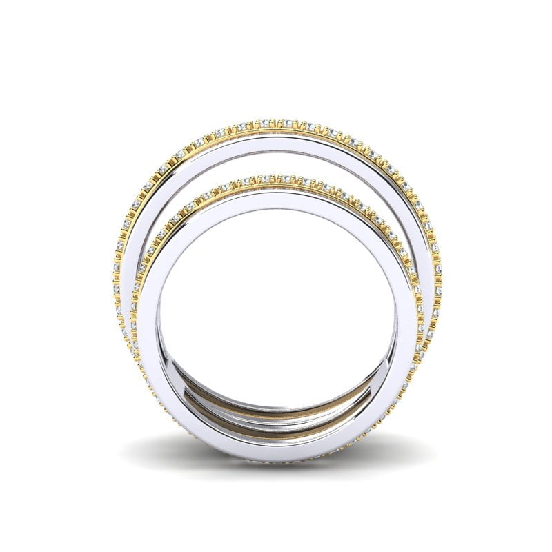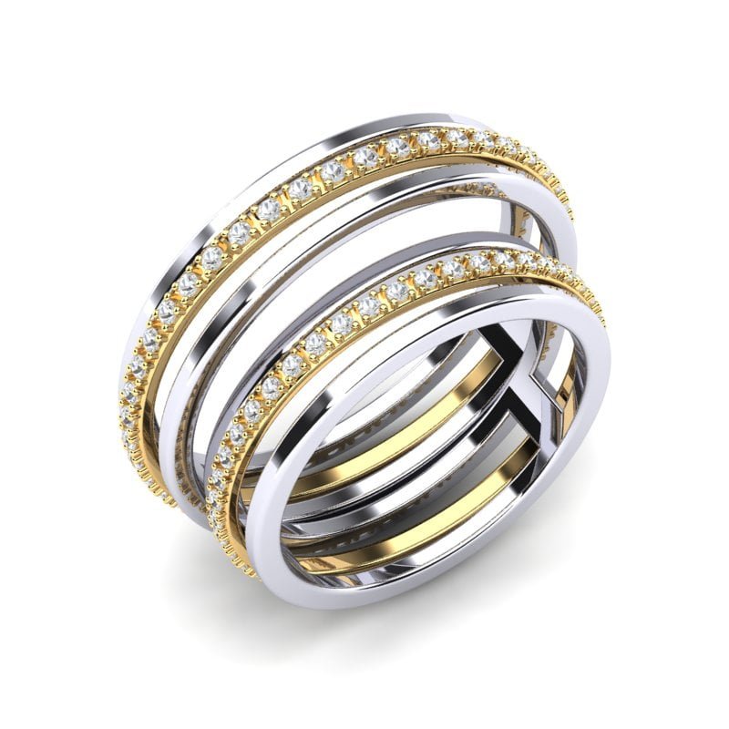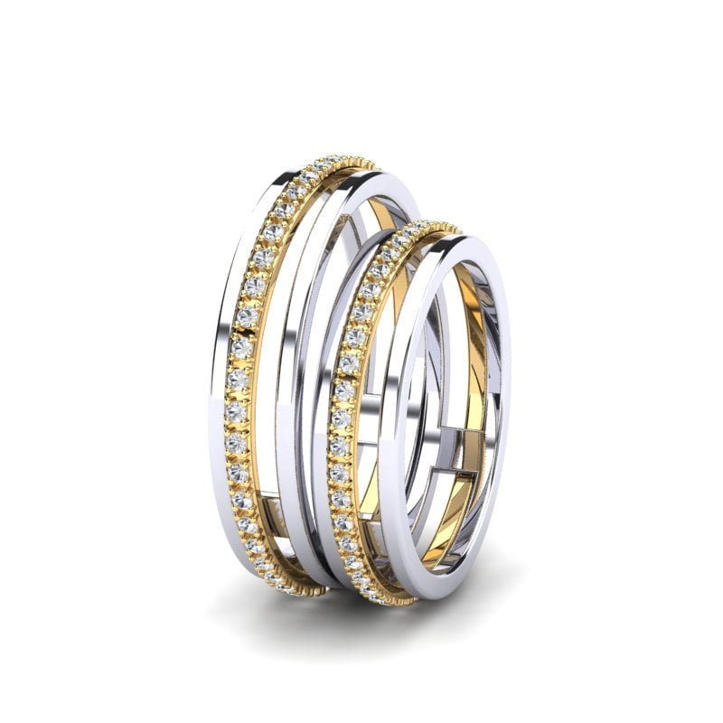 Moderne burme u kombinaciji dve boje zlata predstavljaju savršen spoj inovativnog dizajna i sofisticiranog luksuza. Središnji deo burme je optočen briljantnim dijamantima, koji pružaju neprekidan sjaj i luksuzan izgled. Najposebnija karakteristika ovog dizajna je rotirajući središnji deo, koji dodaje dinamičan i jedinstven element. Predstavljaju savršen izbor za one koji žele da izraze svoju eleganciju i stil na poseban i inovativan način. Idealne kao burme za parove koji traže nešto zaista jedinstveno i moderno, ove burme pružaju savršeni balans između klasične lepote i savremenog luksuza.