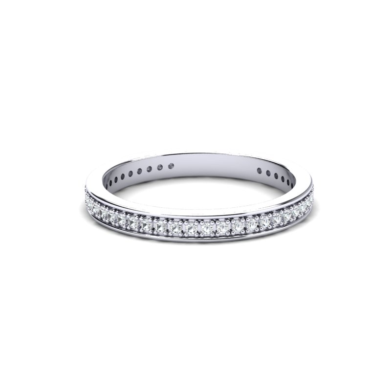Predivan zlatni prsten burma koji oduševljava svojim besprekornim sjajem i luksuznim dizajnom. Izrađen od visokokvalitetnog belog zlata, sa dijamantima pažljivo postavljenim po celom obimu burme. Svaki dijamant je smešten u savršeno oblikovane urezane okvire, omogućavajući da njihova svetlost neprekidno igra i sija iz svih uglova. Ovaj prsten predstavlja savršen spoj klasične lepote i modernog stila, idealan za posebne trenutke i važne prilike. Njegova neprekidna linija dijamanata stvara izvanredan i sofisticiran vizuelni efekat, simbolizujući večnu ljubav i eleganciju.