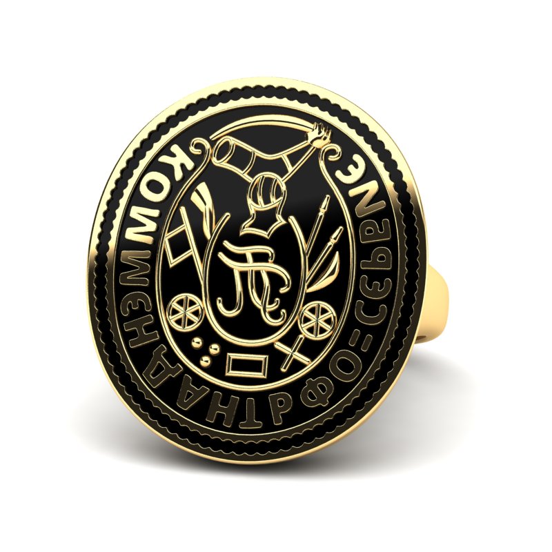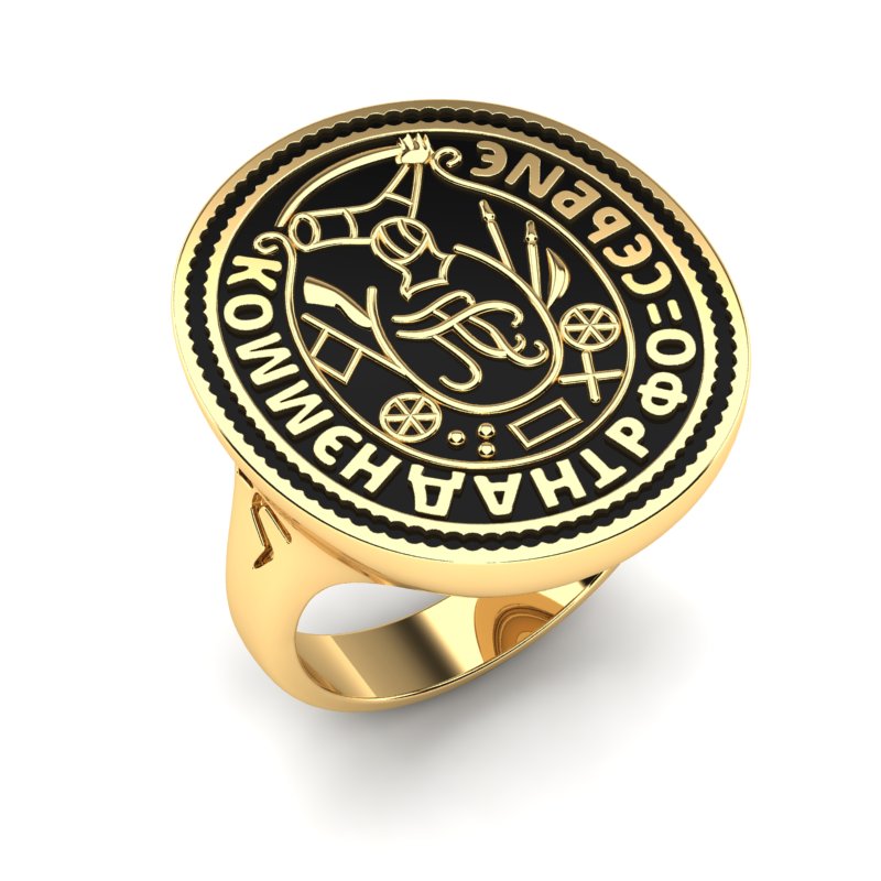 Prsten od žutog zlata sa reljefnom izradom i crnim emajlom, inspirisan Karađorđevim pečatnim prstenom. Predstavlja simbol moći, tradicije i istorijskog nasleđa. Dizajn prstena verno oponaša originalni pečatni prsten Karađorđa, čije su detalje majstori preneli sa velikom preciznošću i pažnjom prema svakom elementu.